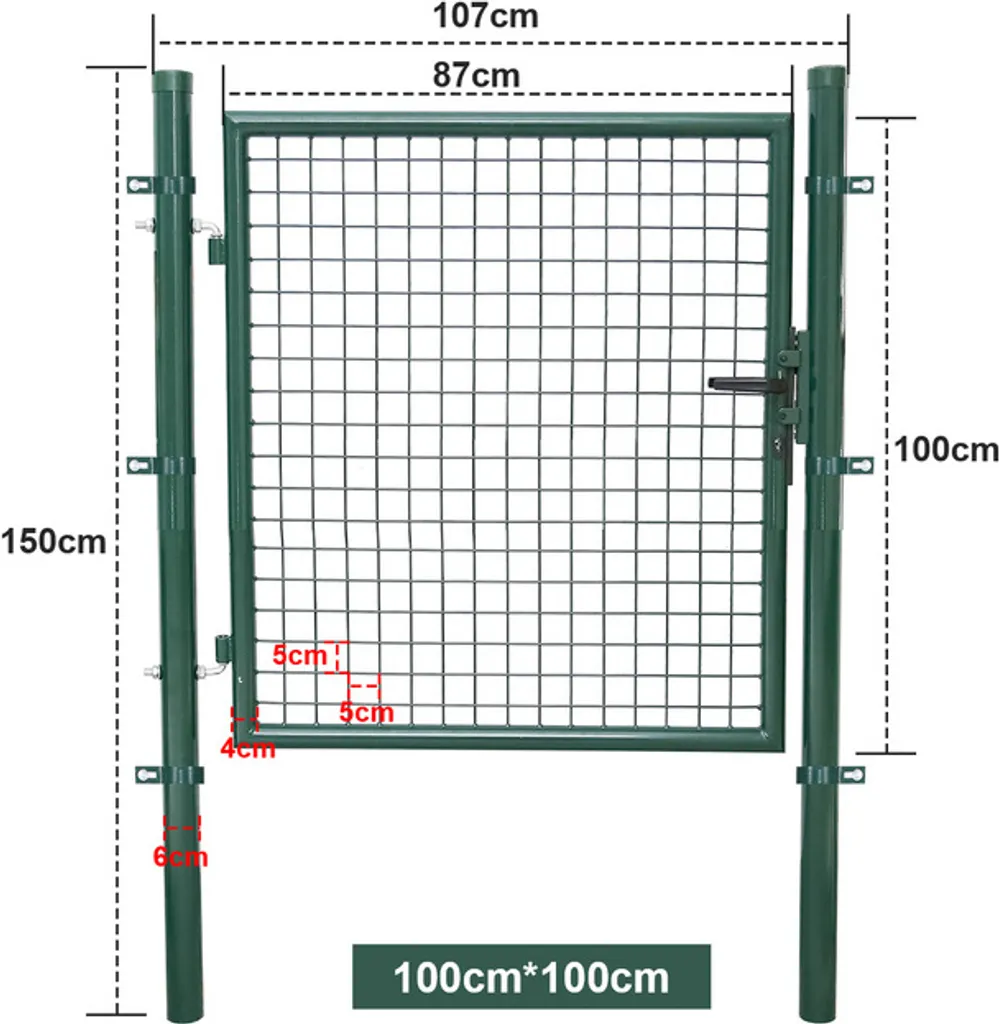 Hey Gartenbesitzer! Dieses massive Gartentor aus verzinktem Stahl ist genau das Richtige für deinen Garten! In schickem Anthrazit lackiert, misst es 105x250 cm und sorgt für sicheren Zugang zu deinem Grundstück. Das stabile Drahtgitter ist fest verschweißt und bietet zusätzliche Stabilität. Mit dabei: Ein komplettes Set aus Schloss, Griff und Erdspieß für sofortigen Einbau. Das Tor ist abschließbar - perfekt wenn du Wert auf Sicherheit legst! Der Zusammenbau ist nötig, aber mit den mitgelieferten Pfosten und dem Rahmen kein Problem. Robust, witterungsbeständig und langlebig - dieses Tor hält auch bei starkem Wind stand. Ideal für Garteneingänge, Innenhöfe oder Terrassen. Verleihe deinem Garten nicht nur Sicherheit, sondern auch noch einen stylischen Look! Einfach aufbauen, einbetonieren und schon hast du einen zuverlässigen Gartenzugang. Mach dein Grundstück komplett mit diesem qualitativ hochwertigen Gartentor!