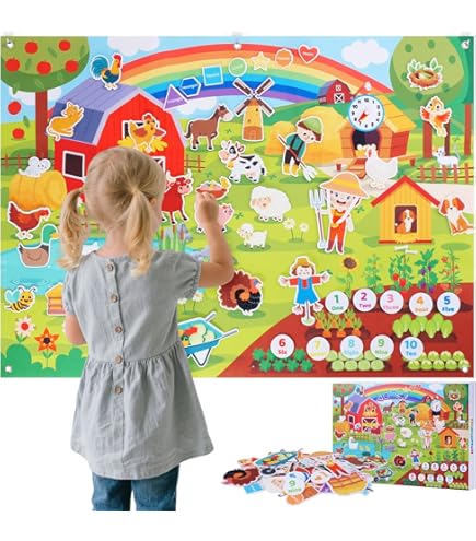 Suchst du nach einem pädagogischen Spielzeug, das dein Kind stundenlang beschäftigt? Diese riesige Filztafel mit 105x75cm ist perfekt für kleine Entdecker! Mit magischen Klebepunkten - keine Magnete nötig, einfach an die Wand kleben und los geht's! Das Set enthält unzählige Bauernhof-Elemente: Tiere, Traktoren, Bäume - alles aus weichem, hochwertigem Filz, der sich angenehm anfühlt und absolut sicher ist. Perfekt für Kinder ab 3 Jahren - fördert die Kreativität, Feinmotorik und das Geschichtenerzählen. Super fürs Kinderzimmer, Klassenzimmer oder als ruhige Beschäftigung für unterwegs. Stell dir vor: Dein Kind erschafft ganze Bauernhof-Geschichten und lernt dabei spielerisch die Tierwelt kennen! Die Filzstücke haften super, fallen aber nicht runter - genial, oder? Auch als Geschenk ein absoluter Hit! Einfach aufhängen, Filzfiguren drauf - und die Fantasie-Reise kann beginnen! Mach deinem Kind eine Freude mit diesem vielseitigen Spielzeug, das nicht nur Spaß macht, sondern auch richtig schlau macht!