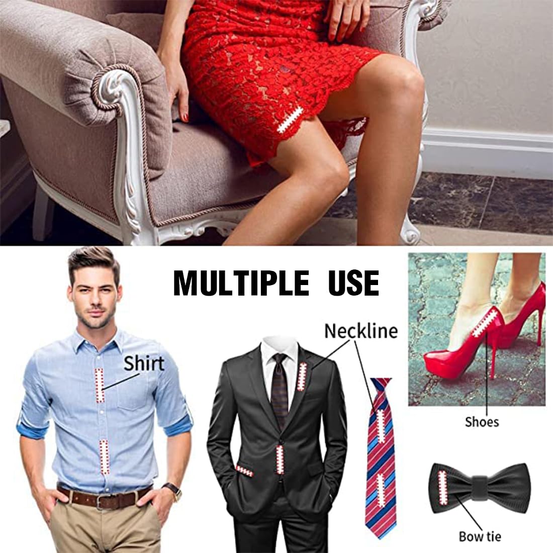 Endlich keine modischen Pannen mehr! Dieses Fashion Tape Set mit 108 Stück in zwei Größen (8,5×1,8cm und 8,5×1,2cm) ist dein geheimes Styling-Werkzeug. Perfekt um tiefe Ausschnitte, verrutschte BH-Träger oder lose Säume zu fixieren - ganz ohne Nadeln! Das transparente Tape ist hautfreundlich, hinterlässt keine Rückstände und hält trotzdem bombenfest. Einfach auf Kleidung und Haut kleben - schon sitzt alles perfekt. Ob beim Tanzen, Feiern oder im Büro - mit diesem Tape bist du immer auf der sicheren Seite. Passt in jede Handtasche für unterwegs!