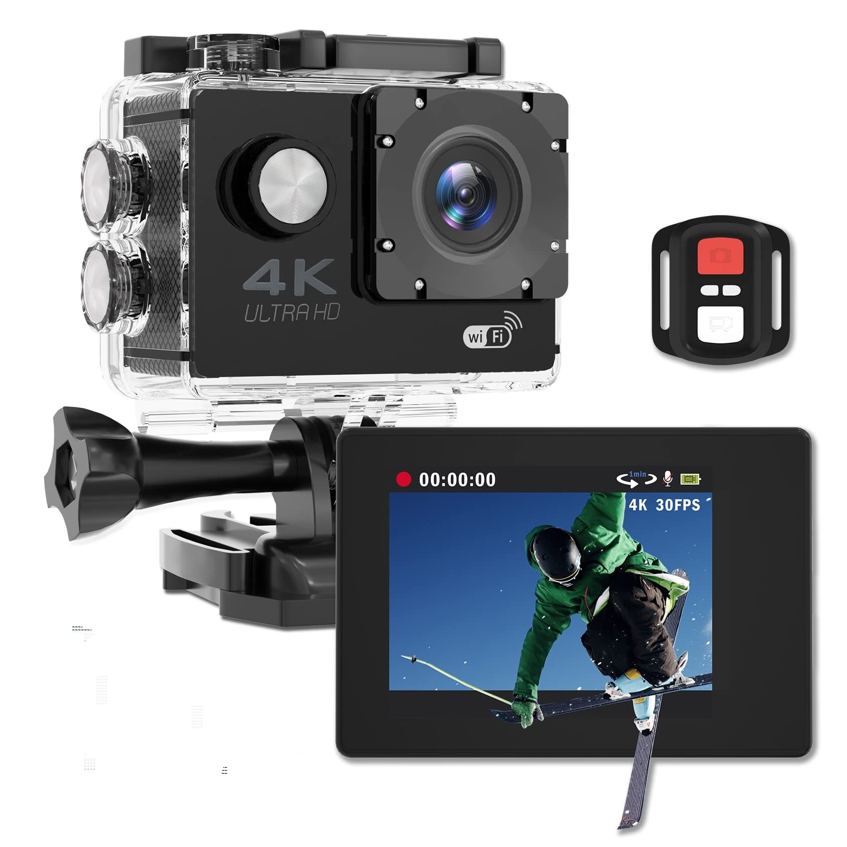 Capture your adventures in brilliant 1080P HD! Diese Action-Kamera ist der perfekte Begleiter für alle Outdoor-Aktivitäten. Mit 1080P Full HD Video bei 30fps und 12MP Fotos sicherst du jeden Moment in bester Qualität. Das wasserdichte Gehäuse schützt bis 30m Tiefe - ideal für Schnorcheln, Tauchen, Surfen oder einfach bei Regenwetter! Der 140° Weitwinkel mit 6-schichtiger Glaslinse fängt mehr von der Action ein und korrigiert Verzerrungen automatisch. Besonderes Highlight: Das umfangreiche Zubehör-Set inklusive Fahrradhalterungen, Helmbefestigungen, Bandagen und Adaptern ermöglicht Montage an Helmen, Fahrrädern, Autos und mehr! Mit eingebautem 900mAh Akku für ca. 1,5 Stunden Laufzeit und kompaktem, leichtem Design ist sie immer einsatzbereit. Unterstützt Zeitraffer, Serienaufnahmen und Burst-Modus für kreative Aufnahmen. Perfekt für Motorradfahrer, Radsportler, Wassersportler und alle Abenteurer - deine Action, deine Kamera!