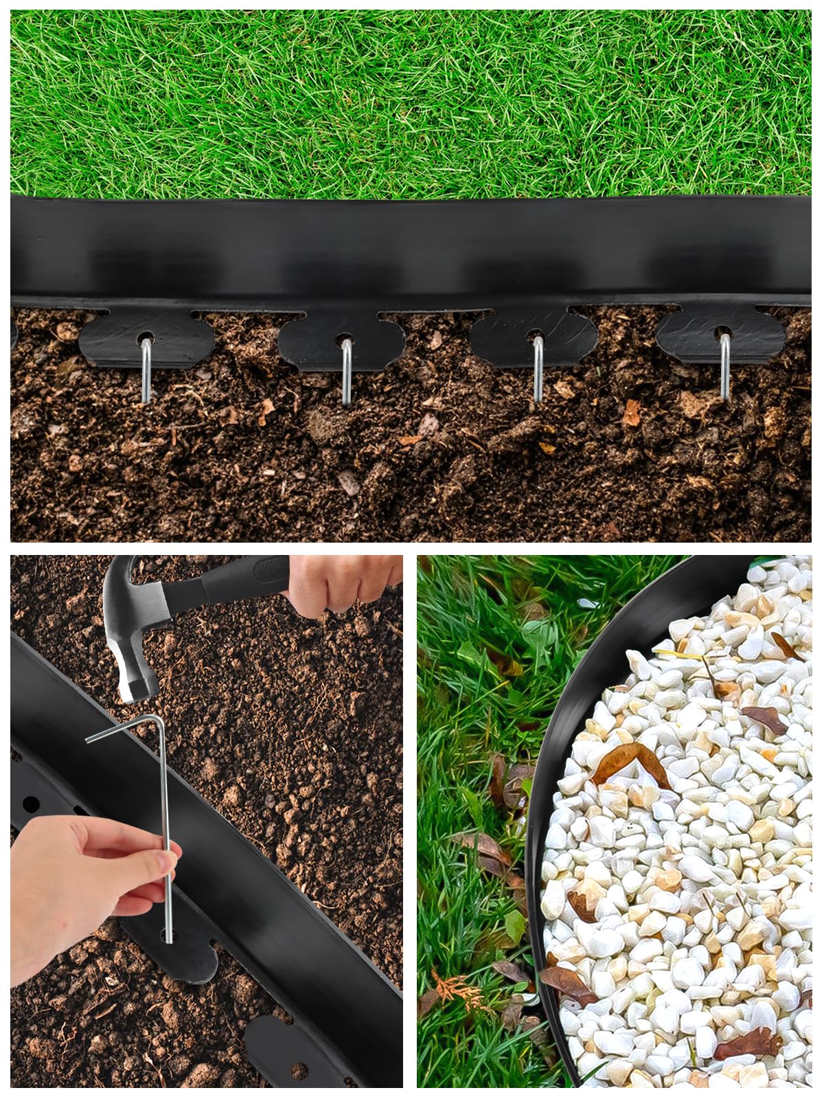 Macht endlich Schluss mit dem lästigen Graben für Rasenkanten! Dieses Graxury Set besteht aus 12 Metern flexibler, 10 cm hoher Rasenkante aus robustem Kunststoff und 60 praktischen 20 cm langen Erdankern - also ein Anker alle 2-3 Löcher. Einfach die Kante in die gewünschte Form biegen (gerade oder gebogen), die Anker mit nem Hammer reinhauen und fertig ist die professionelle Gartenabgrenzung! Bei hartem Boden einfach vorher etwas wässern, bei steinigen Böden kannst du optional Metallanker verwenden. Im Lieferumfang sind sogar 4 Verbinder enthalten, damit zwischen den Kantenstücken keine Lücken entstehen. Plus eine robuste Gartenschere zum Zuschneiden. Perfekt für Blumenbeete, Rasenflächen, Gehwege oder um Bäume herum. Hält bei jedem Wetter und sieht immer ordentlich aus. Falls mal was sein sollte: Unser Kundenservice hilft dir weiter und schickt dir bei Bedarf sogar kostenlos U-förmige Stahlanker!