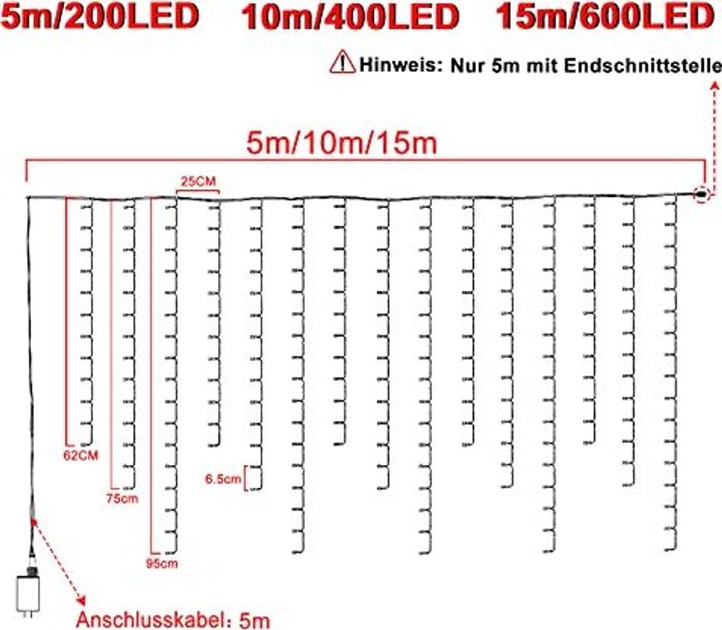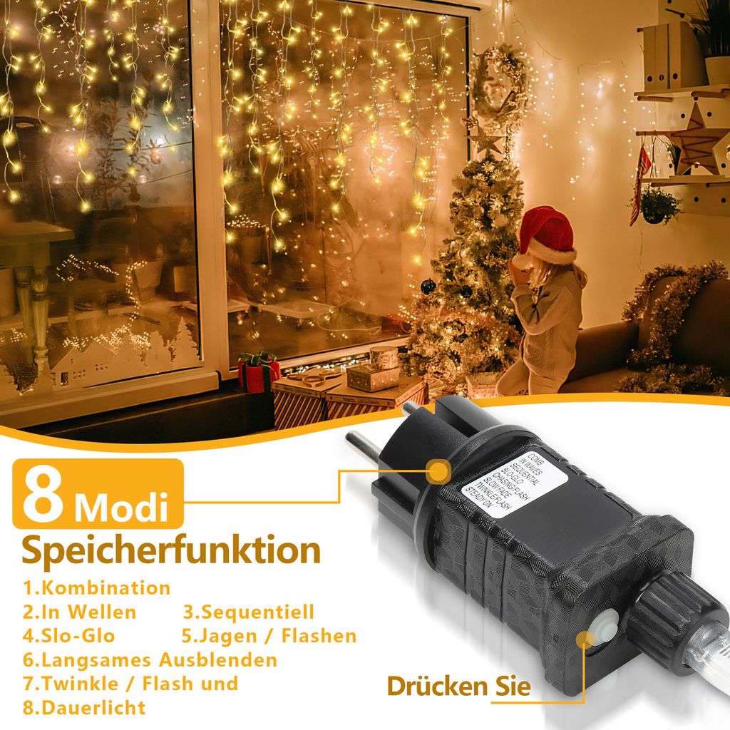 Halloween-Fans, diese Eisregen-Lichterkette ist ein absoluter Hingucker! Mit 10m Länge und 400 LEDs in lila und orange kreiert sie die perfekte Grusel-Atmosphäre. Die IP44 Wasserdichtigkeit macht sie ideal für den Außenbereich - ob an der Hausfassade, am Zaun oder im Garten. Mit 8 verschiedenen Lichtmoden könnt ihr zwischen Kombination, Wellen, Blitzen und Dauerlicht wählen. Der praktische Timer schaltet die Lichter automatisch ein und aus (6h an, 18h aus). Besonders cool: Die Ketten sind end-to-end verbindbar - bis zu 3 Sets könnt ihr zusammenschließen für riesige Beleuchtungsflächen. Die 75 Eisregen-Saiten hängen natürlich herab und sehen professionell aus. Perfekt für Halloween-Partys, aber auch für andere Feiertage wie Weihnachten oder Geburtstage. Einfach aufhängen, Stecker in die Dose - und schon verwandelt sich euer Zuhause in eine mystische Halloween-Landschaft. Die Speicherfunktion merkt sich eure letzte Einstellung, das spart lästiges Umprogrammieren. Absolutes Must-Have für alle, die ihr Haus besonders schmücken wollen!