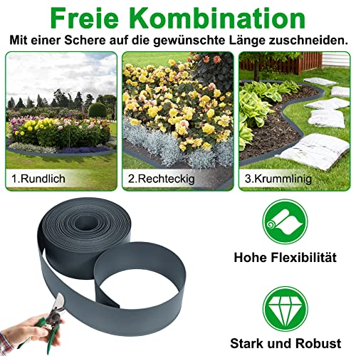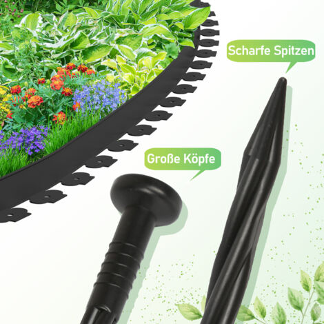 Endlich mal Ordnung im Garten! Diese 10 Meter lange Rasenkante in 5 cm Breite bringt Struktur in deine Beete und Rasenflächen. Aus robustem PE-Kunststoff gefertigt, ist sie super flexibel und lässt sich kinderleicht um Kurven, Kreise oder gerade Linien biegen. Einfach in die gewünschte Form bringen, bei Bedarf mit einer Schere zuschneiden und mit den 30 mitgelieferten Erdankern (je 15 cm lang) fixieren - kein lästiges Ausgraben nötig! Die schwarze Farbe ist dezent und passt sich jeder Gartengestaltung an. Perfekt für Blumenbeete, Gehwege, Pflastersteine oder als Abgrenzung zwischen Rasen und Kies. Das wetterfeste Material hält auch bei starkem Regen oder Sonne problemlos stand und verzieht sich nicht. Ob du ein Profi-Gärtner bist oder einfach nur deinen Garten etwas aufhübschen willst - mit dieser Rasenkante klappt's garantiert! Tipp: Bei kühlerem Wetter wird der Kunststoff etwas steifer, also am besten an einem warmen Tag installieren.