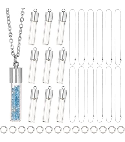 Erstelle deine eigenen persönlichen Erinnerungsstücke mit diesem SUNNYCLUE DIY Glasfläschchen-Set! Enthalten sind 10 transparente Glasfläschchen in Tropfen- und Herzform (23x16mm) mit Schraubkappen, 10 offene Binderinge (5x0,8mm) und 10 Ketten à 46cm Länge. Einfach die Kappe abschrauben und deine persönlichen Schätze hineinlegen - ob duftende Kräuter, Sand vom letzten Urlaub, winzige Perlen, Parfüm, Haare deines Haustiers oder andere bedeutungsvolle Erinnerungen. Dann den Bindering schließen und die Kette durchfädeln - schon hast du eine einzigartige Halskette mit persönlicher Geschichte. Perfekt für DIY-Schmuck, als Hochzeitsgeschenk, Freundschaftsgeschenk oder einfach um besondere Momente immer bei dir zu tragen. Die Glasfläschchen sind leicht, schön und verblassen nicht. Ein kreatives Set für 10 komplett individuelle Halsketten - deiner Fantasie sind keine Grenzen gesetzt!