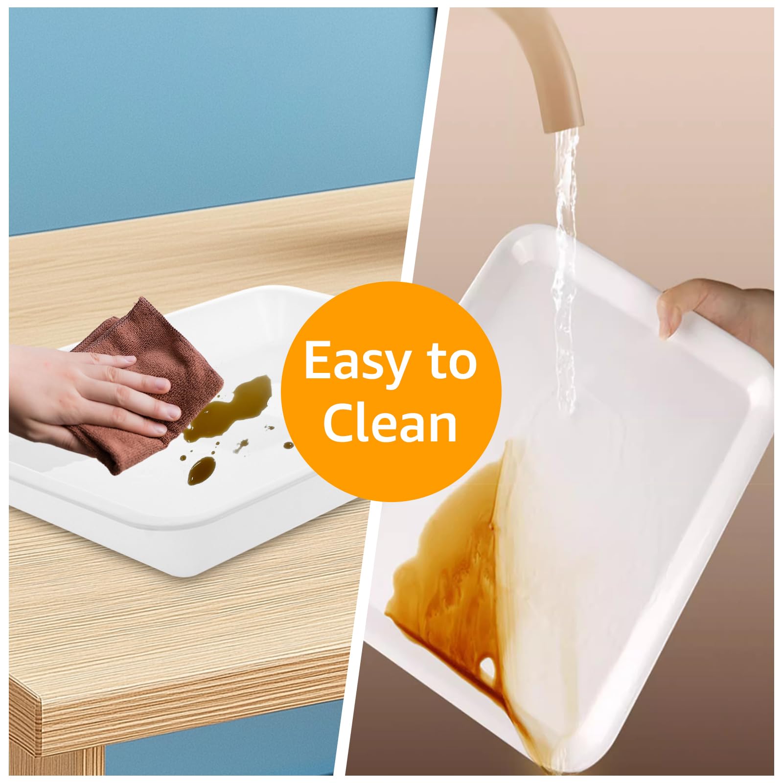 Endlich Ordnung in der Küche! Mit diesen 10 weißen Tabletts von CYEER hast du immer die passende Unterlage parat. Ob für's Abendbrot, nen Snack vor dem TV oder um die Bauklötze der Kleinen schön sortiert zu haben - die Dinger sind echt praktisch. Aus stabilem PP-Kunststoff, spülmaschinengeeignet (ja, wirklich!) und in der perfekten Größe von 34x25x3cm. Die Oberfläche ist glatt und lässt sich easy reinigen, egal ob mit nem feuchten Lappen oder in der Spülmaschine. Und wenn du sie mal nicht brauchst, stapelst du sie einfach platzsparend ineinander. Super auch für Partys: Ein Tablett für die Chips, eins für die Dip-Schälchen, eins für die Kekse... du verstehst schon. Die weiße Farbe passt zu fast jedem Einrichtungsstil und sieht immer sauber und frisch aus. Ob im Home-Office für Büroklamotten, im Bad für Cremes und so'n Kram oder in der Werkstatt für Schrauben und Kleinteile - mit den Tabletts bleibt alles an seinem Platz. Und falls mal was daneben geht: Kein Problem, das Material ist tropfsicher. Einfach abwischen und fertig. 10 Stück sind übrigens ne Hausnummer - da kannst du wirklich alle Ecken deiner Wohnung damit ausstatten.