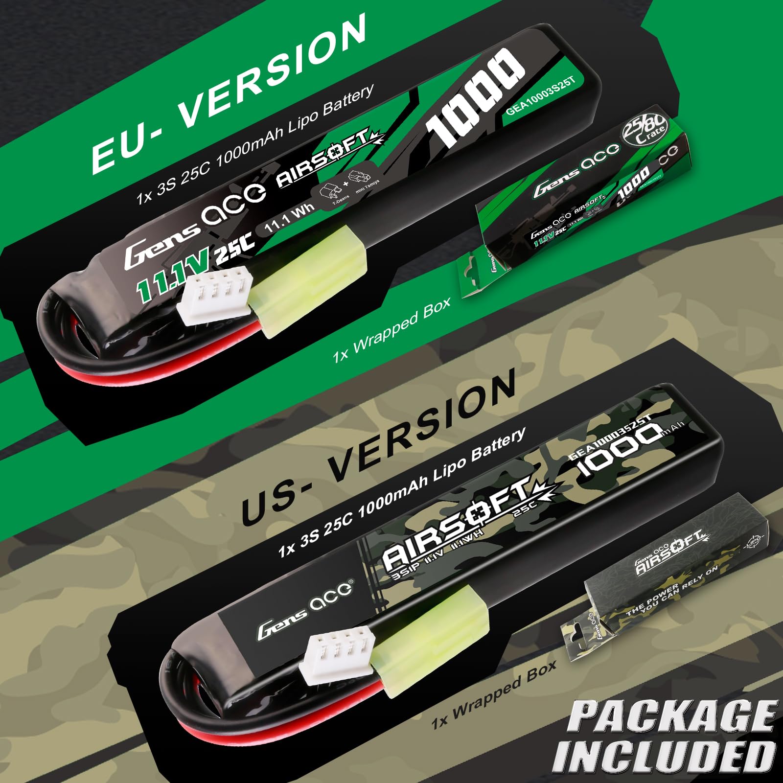 • Gens Ace 3S Lipo Akku 1100mAh 11.1V Mit Deans Stecker - Für Airsoft Gewehre