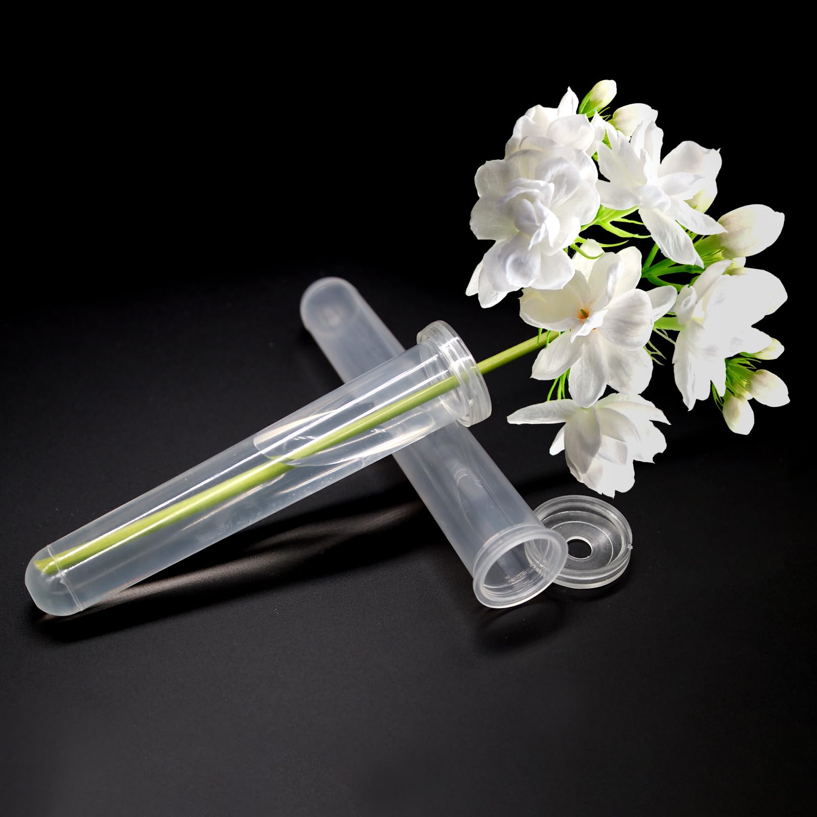 Diese Reagenzglas-Vasen sind der absolute Hit für kreative Blumenarrangements! 15 Stück im Set, jeweils 110mm hoch und 24mm Durchmesser - perfekt für individuelle Tischdekorationen. Mit 60ml Fassungsvermögen halten die Blumen länger frisch und du musst seltener Wasser nachfüllen. Die weiche Silikonhülle oben passt sich jedem Stängeldurchmesser an - ob zarte Vergissmeinnicht oder kräftige Rosen. Aus robustem Kunststoff, der nicht so leicht bricht und durch das transparente Design siehst du immer den Wasserstand. Super vielseitig einsetzbar: in Blumenschaum stecken, an der Wand befestigen, mit Holzständern kombinieren oder einfach auf den Tisch stellen. Bringt modernen Flair in jede Wohnung und ist perfekt für Hochzeiten, Events oder die tägliche Deko. Einfach die Blumenstiele reinsetzen, Wasser auffüllen und sich an der schönen Dekoration erfreuen!