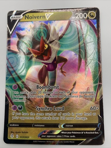 Für alle Pokemon-Sammler und -Spieler: Diese Noivern V Karte aus dem EVOLVING SKIES Set ist ein echter Schatz! Als Rare-Karte (117/203) ist sie begehrt bei Sammlern und im Spiel stark einsetzbar. Noivern, die Schall-Pokemon, glänzt hier in voller Pracht. Perfekt zum Erweitern deiner Sammlung oder um dein Deck aufzuwerten. Die Karte ist in gutem Zustand und bereit für den Einsatz im Spiel oder zur Präsentation in deiner Sammlung. Ob du sie spielst oder sammelst - mit dieser Noivern V Karte machst du nichts falsch. Ein Must-Have für alle Pokemon-Fans, die ihre Sammlung komplettieren oder ihr Deck verbessern wollen. Schnapp sie dir, bevor sie weg ist!
