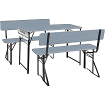 Enthalten sind: 2 Tische und 5 Bänke - Platz für bis zu 6 Personen. Perfekt für gesellige Runden, Grillabende oder kleine Feiern. Die Maße sind mit 117 cm Länge ideal für kleinere Balkone.