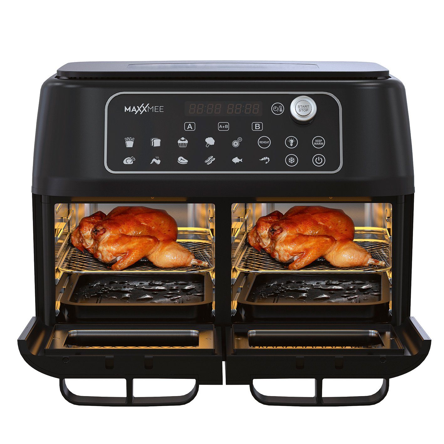 Koche wie ein Profi mit dieser innovativen Doppelkammer-Heißluftfritteuse! Mit 11L Gesamtkapazität (7L + 4L) kannst du jetzt Hauptgericht und Beilage gleichzeitig zubereiten - ohne Geschmacksübertragung! Die intelligente Sync-Funktion sorgt dafür, dass beide Körbe synchron starten und enden. 2600W Power und 360° Heißluftzirkulation garantieren perfekte Ergebnisse bei bis zu 80% weniger Fett. Mit 10 voreingestellten Programmen für Pommes, Steak, Hähnchen & mehr. Das große Touch-Display macht die Bedienung super einfach und die Shake-Erinnerung sorgt für gleichmäßige Bräune. Perfekt für Familien, die zeitsparend und gesund kochen wollen!