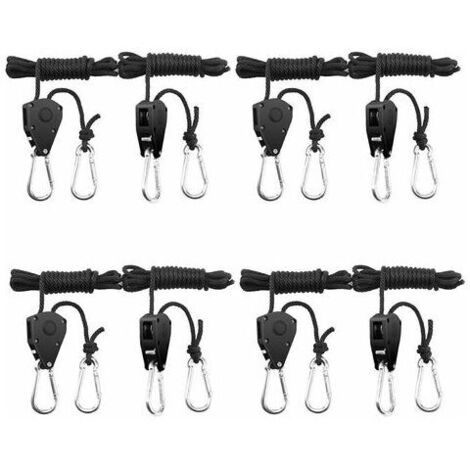 Diese 11 Seilratschen sind echte Alleskönner! Mit 2,2 Meter langem Nylonseil (4 mm Durchmesser) und robusten Metallhaken lassen sich Pflanzenlampen, Ventilatoren und vieles mehr einfach aufhängen und höhenverstellen. Jede Ratsche trägt bis zu 34 kg - das ist richtig stabil! Das integrierte Metallgetriebe sorgt für sicheres Arretieren ohne Rutschen. Einfach zu bedienen: Seil ziehen zum Spannen, Hebel drücken zum Lösen. Perfekt für Indoor-Gardening, Werkstatt oder Camping. Mit Aluminium-Kompressionsverschlüssen für extra Sicherheit.