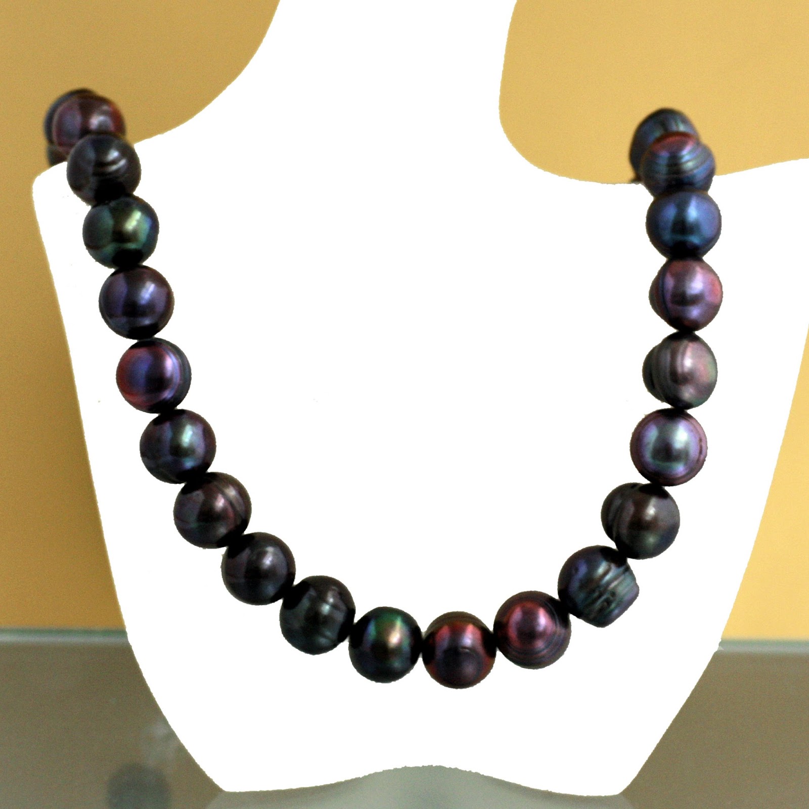 Halskette Mit Tahiti-Perlen 12-11mm - Natürliche Schwarz-blaue Perlenkette