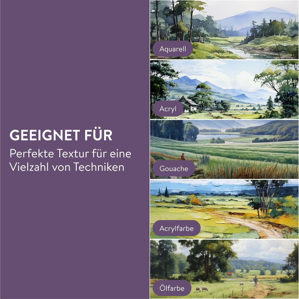 Professionelles Aquarellpapier von Derwent für anspruchsvolle Künstler! Der A3-Block enthält 12 Blatt hochwertiges, säurefreies Papier mit 300gsm Stärke. Speziell entwickelt für wasservermalbare Stifte - perfekt für Derwent Inktense und Artbars. Die glatte, natürlich gewebte Oberfläche eignet sich ideal für detaillierte Aquarelle und trockene Zeichnungen. Das schwere Papier reagiert gut auf Wasser, für große Flächen empfiehlt sich vorheriges Aufspannen. Fadengeheftet für stabilen Halt. Ob für Aquarellmalerei, Farbwaschungen oder Mixed Media - dieses Papier macht alles mit. Ein Muss für jeden, der mit wasserlöslichen Medien arbeitet!