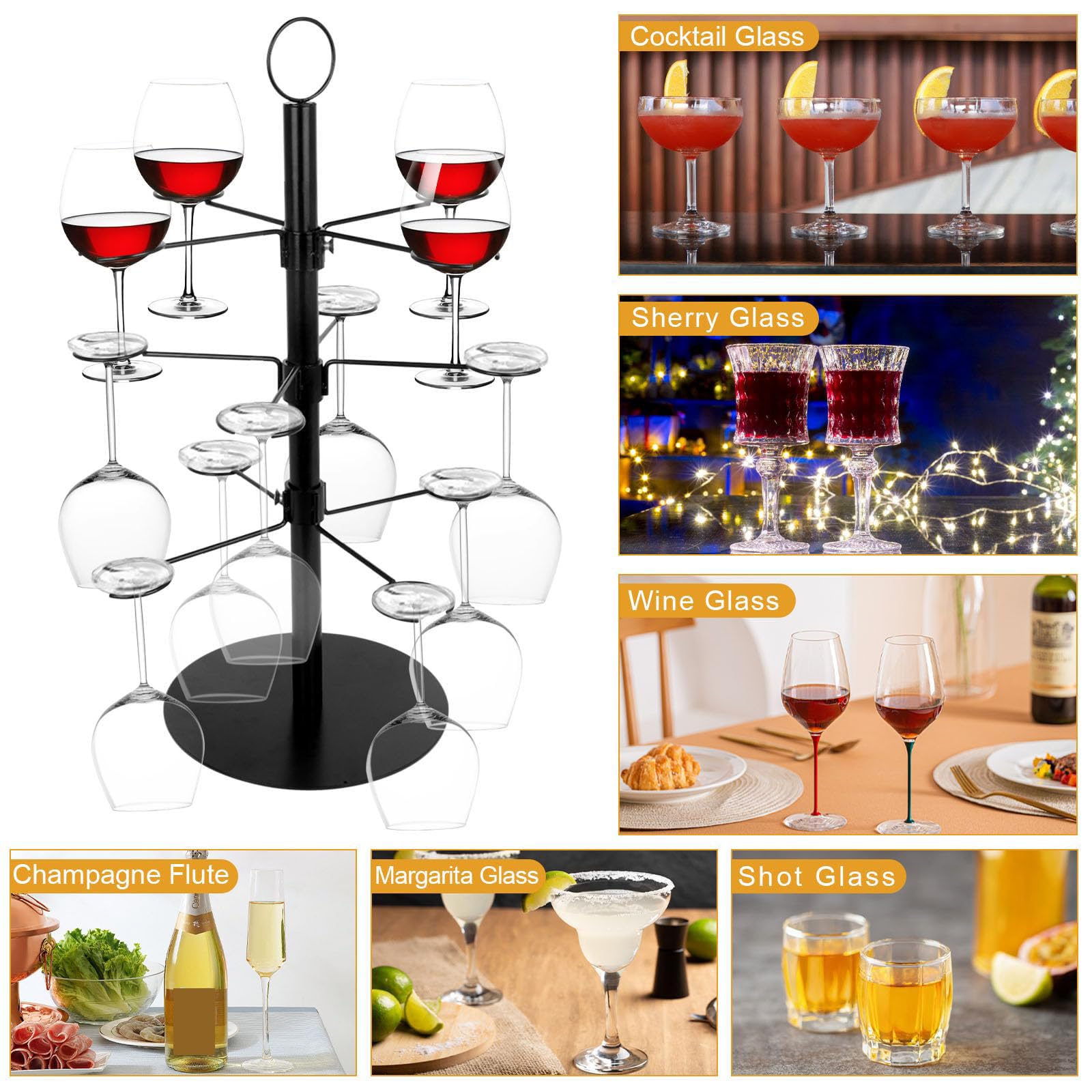 Wow-Faktor für deine nächste Party! Dieser Getränke-Tower bietet Platz für stolze 12 Gläser - perfekt für Aperol, Champagner, Cocktails oder Wein. Mit 3 Ebenen und abnehmbaren Racks für einfache Lagerung. Aus robustem Metall, 55,5 cm hoch und 35,5 cm breit - super stabil steht er bombenfest. Einfache Montage in 60 Sekunden - einfach zusammenschnappen und fertig! Kann sowohl mit gefüllten Gläsern als auch zur Aufbewahrung umgedrehter Gläser verwendet werden. Perfekt für Geburtstage, Hochzeiten, Weihnachten oder jede andere Feier. Die Gäste werden begeistert sein! Gläser nicht im Lieferumfang enthalten. Mach deine Party zum unvergesslichen Event!