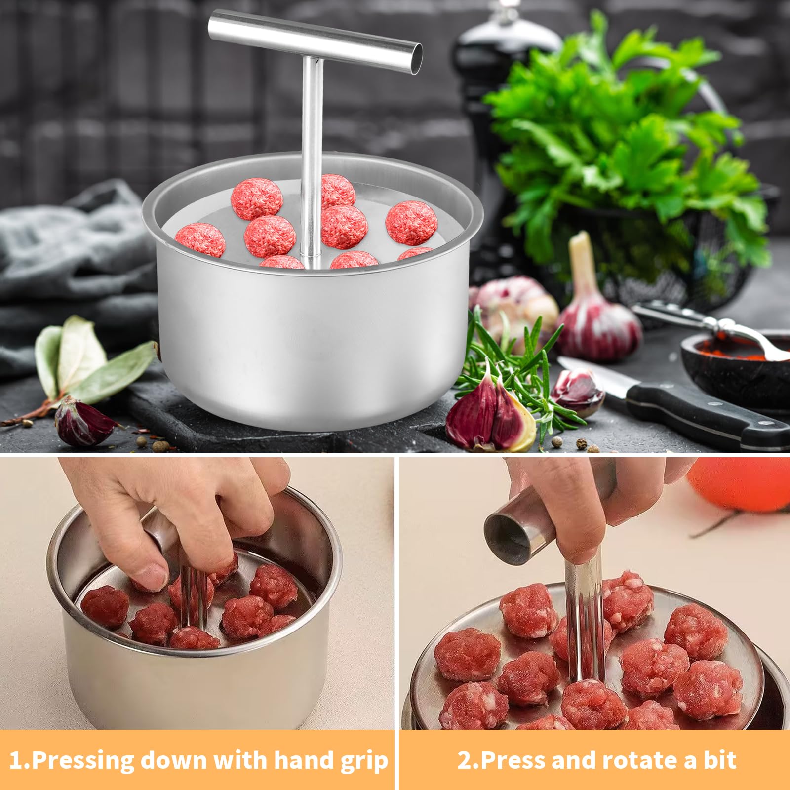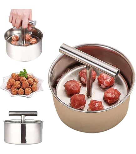 Koch-Enthusiasten, dieser Fleischbällchen-Former wird euer Leben in der Küche revolutionieren! Stellt euch vor: Ihr könnt 12 perfekt geformte Frikadellen auf einmal machen - gleichmäßig, sauber und superschnell. Kein Gefummel mehr mit klebrigen Händen oder ungleichmäßigen Bällchen. Aus hochwertigem Edelstahl gefertigt, ist der Former rostfrei, leicht zu reinigen und verhindert das Anhaften der Fleischmasse. Einfach die vorbereitete Hackfleisch-Mischung in die Vertiefungen geben, festdrücken und schon habt ihr eine ganze Charge perfekter Frikadellen. Ob für klassische Rinderfrikadellen, Hähnchenbällchen oder vegetarische Varianten - der Former ist vielseitig einsetzbar. Besonders praktisch für Familien, Party-Vorbereitungen oder Meal-Prep - in null Komma nichts habt ihr große Mengen an gleichmäßigen Bällchen produziert. Die Reinigung ist ein Kinderspiel: Einfach unter fließendem Wasser abspülen und schon ist der Former wieder blitzblank. Schluss mit klebrigen Fingern und unordentlichen Arbeitsflächen - dieser Küchenhelfer bringt Professionalität in eure Heimküche und spart dabei jede Menge Zeit und Nerven!