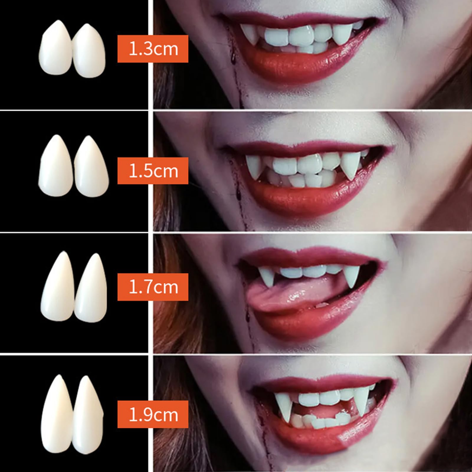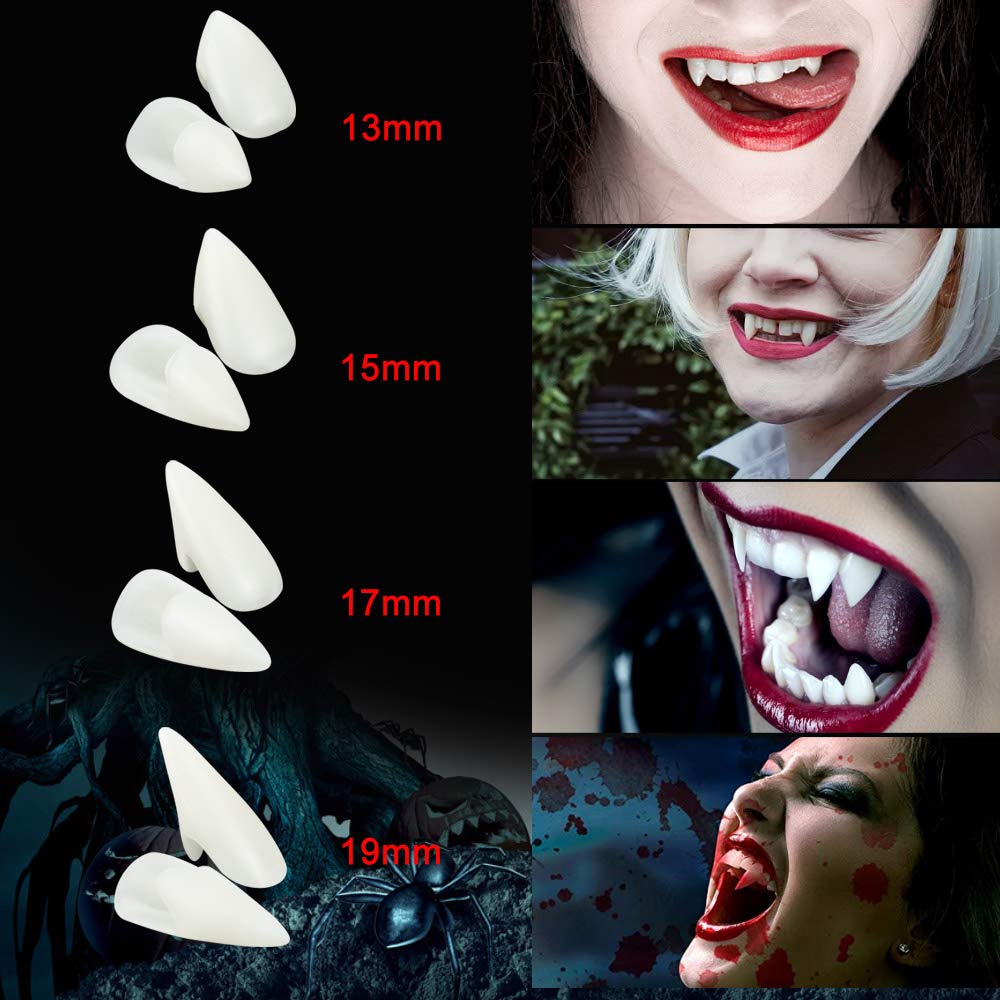 Bereit für die gruseligste Nacht des Jahres? Mit diesem Vampirzähne-Set wirst du zum echten Blutsauger! Enthalten sind 12 Paar Vampirzähne in 4 verschiedenen Größen (13mm, 15mm, 17mm, 19mm) - da ist für jeden Mund die passende Größe dabei. Dazu gibt es 3 Tuben festen Kleber, 6 Bögen mit coolen Tattoo-Aufklebern und eine praktische Pinzette. Aus sicherem Harzmaterial, ungiftig und ohne komischen Geruch. Die Anwendung ist super einfach: Klebe-Perlen erhitzen bis sie durchsichtig werden, auf die Zähne drücken, eigene Zähne trocken reiben und dann die Vampirzähne festdrücken. Perfekt für Halloween-Partys, Cosplay-Events oder Grusel-Auftritte. Kombiniere sie mit Vampir-Kostümen und künstlichem Blut für den ultimativen Grusel-Effekt. Mit der ganzen Familie und Freunden teilen - bei 12 Paaren ist für alle was dabei! Einfach anbringen und dein Grusel-Look ist komplett!