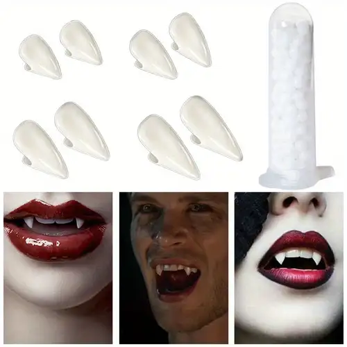 Die Anwendung ist simpler als du denkst: Klebepellets erhitzen bis sie durchsichtig werden, auf die Zähne drücken, und dann schnell auf die eigenen Zähne kleben. Kurz warten - und schon bist du der gruseligste Vampir auf der Party!