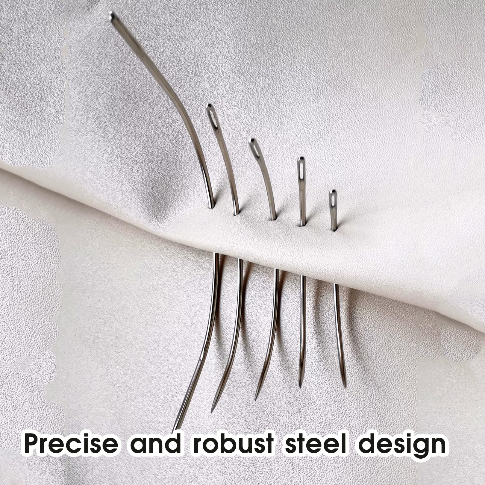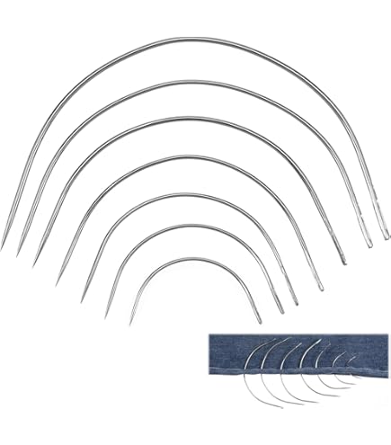 Professionelle Nähnadeln für anspruchsvolle Projekte! Dieses Set enthält 12 gebogene Nadeln in 6 verschiedenen Größen (5,1cm bis 12,7cm). Aus vernickeltem Stahl - rostfrei und langlebig. Perfekt für Lederarbeiten, dicke Stoffe, Planen und sogar für Perückenherstellung. Die C-Form macht das Nähen in engen Bereichen viel einfacher. Jede Größe ist zweimal enthalten. Achte beim Nähen von sehr steifem Material auf eine Ahle und zieh nicht zu stark an der Nadel. Ein unverzichtbares Werkzeug für jeden Handwerker und Bastler!