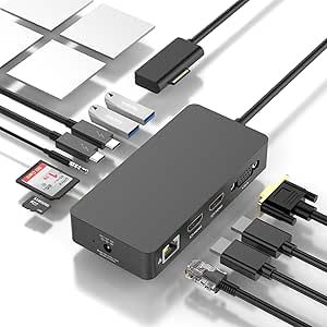Verwandle dein Surface in eine vollwertige Arbeitsstation! Diese 12-in-1 Dockingstation macht aus deinem Surface Pro oder Laptop im Handumdrehen einen leistungsstarken Desktop-Computer.