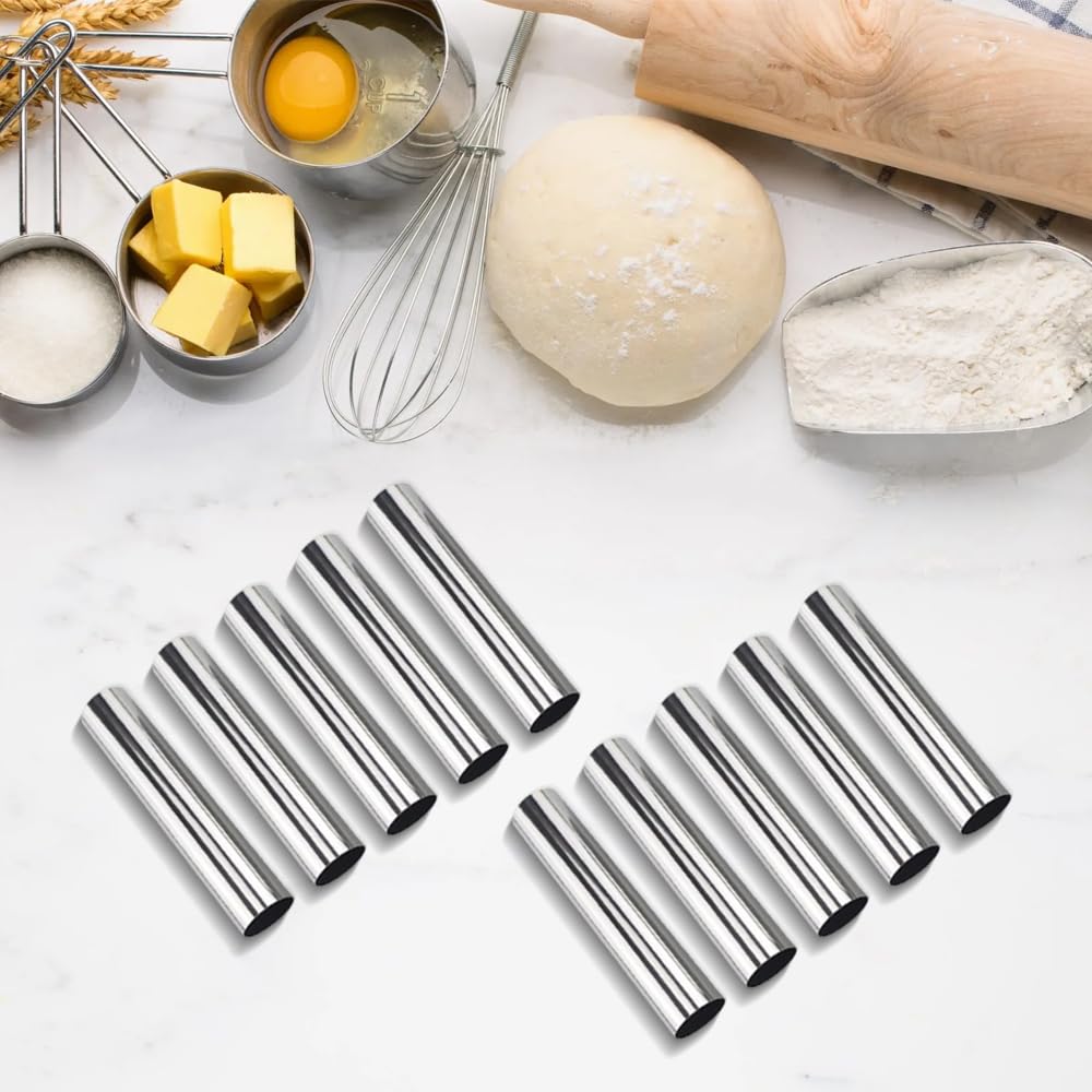 Backst du gerne und möchtest dein Repertoire erweitern? Mit diesen professionellen Sahnehorn-Formen aus Edelstahl gelingen dir die leckersten Kreationen! Das 12-teilige Set bietet dir alle Möglichkeiten, um köstliche Hörnchen, Cannoli, dänisches Gebäck oder sogar Pizza-Kegel zu backen. Die Formen sind aus hochwertigem, hitzebeständigem Edelstahl gefertigt - rostfrei, leicht zu reinigen und ewig wiederverwendbar. Einfach den Teig um die kegelförmigen Backhilfen wickeln, im Ofen backen oder in Öl ausbacken. Nach dem Backen kannst du die hohlen Gebäckstücke mit süßen oder herzhaften Füllungen versehen. Perfekt für Hobby-Bäcker, die ihre Kreativität ausleben wollen. Toll auch für gemeinsame Backaktionen mit Kindern - hier entstehen garantiert leckere Ergebnisse und jede Menge Spaß! Das Set ist ein ideales Geschenk für alle, die gerne in der Küche experimentieren. Von klassischen Sahnehörnchen bis zu innovativen Kreationen - mit diesen Formen ist alles möglich!