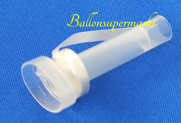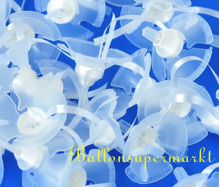 Party vorbereiten war noch nie so einfach! Mit diesen 120 Ballonverschlüssen mit weißen Bändern machst du im Handumdrehen deine Location festlich. \\n\\nJedes Band ist 1,2 Meter lang und 5 mm breit - perfekt um Helium-Ballons zu befestigen und schweben zu lassen. Die praktischen Verschlüsse haben 2 cm Durchmesser und halten jeden Ballon sicher fest. \\n\\nDas klassische Weiß passt zu jeder Party-Farbkombination - ob Hochzeit, Geburtstag oder Firmenfeier. Aus hochwertigem Kunststoff gefertigt, sind die Verschlüsse wiederverwendbar und damit super umweltfreundlich. \\n\\nDas geniale knotenfreie Design spart dir nerviges Gefummel - einfach den Ballonhals durchziehen, zudrücken und fertig! So einfach, dass sogar Kinder und ältere Menschen damit umgehen können. \\n\\nMit den 120 Stück im Pack bist du für jede Party gerüstet und musst nicht ständig nachkaufen. Zeit und Nerven gespart - mehr Zeit zum Feiern! \\n\\nEgal ob du die Ballons an Girlanden befestigen willst oder sie einfach im Raum schweben lassen möchtest - mit diesem Set klappt's garantiert!