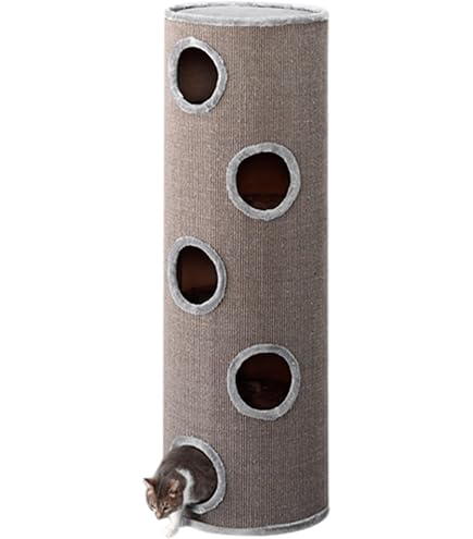 Deine Katze wird verrückt nach diesem Kratzbaum sein! Der Nobby DASHA IV in schwarz ist nicht nur ein Kratzbaum, sondern ein richtiges Abenteuer-Spielzeug für deine Samtpfote. Mit 120cm Höhe und 50cm Durchmesser bietet er genug Platz zum Klettern, Spielen und Ausruhen. Die zylindrische Form mit mehreren Ebenen und Durchgängen lädt zum Erkunden ein - hier kann sich deine Katze so richtig austoben. Der Clou: Die Oberfläche besteht zum Großteil aus robustem Sisal, perfekt zum Krallenwetzen und Kratzen. Die Bodenplatten und Eingangsränder sind dagegen mit weichem Plüsch bezogen, super gemütlich zum Kuscheln und Dösen. Mehrere Einstiegslöcher machen den Kratzbaum zur echten Spielhöhle, in der sich deine Katze verstecken und beobachten kann. Stabil gebaut und in modernem Schwarz passt dieser Kratzbaum in jede Wohnungseinrichtung. Deine Möbel werden es dir danken, wenn deine Katze hier ihre Krallen schärft statt an Sofa oder Vorhängen. Ein Must-Have für jede Katzenhaltung - dein Stubentiger wird dich lieben!