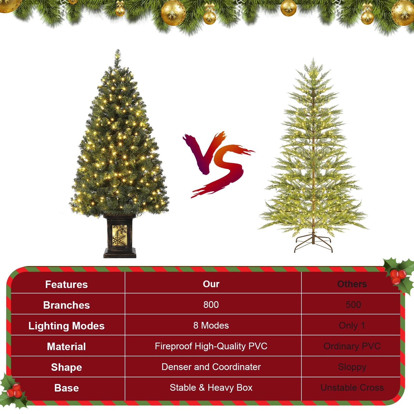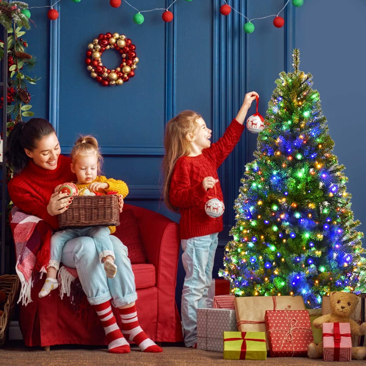 Weihnachtszauber für dein Zuhause! Dieser 120cm große Weihnachtsbaum kommt schon komplett mit 150 LED-Lichtern geschmückt - mit echtem Schnee-Effekt auf den Zweigen! 9 verschiedene Lichtmodi von gemütlichem Warmweiß bis buntem RGB lassen dich die perfekte Stimmung einstellen. Aus hochwertigem, flammhemmendem PVC mit UV-Schutz, damit der Baum viele Jahre hält. Einfaches Klappsystem - schnell aufgebaut und schon strahlt dein Wohnzimmer im festlichen Glanz. Mit roten Beeren verziert, für den perfekten Weihnachtslook. Ob auf dem Esstisch, im Büro oder im Wohnzimmer - dieser Baum bringt sofort Weihnachtsstimmung!