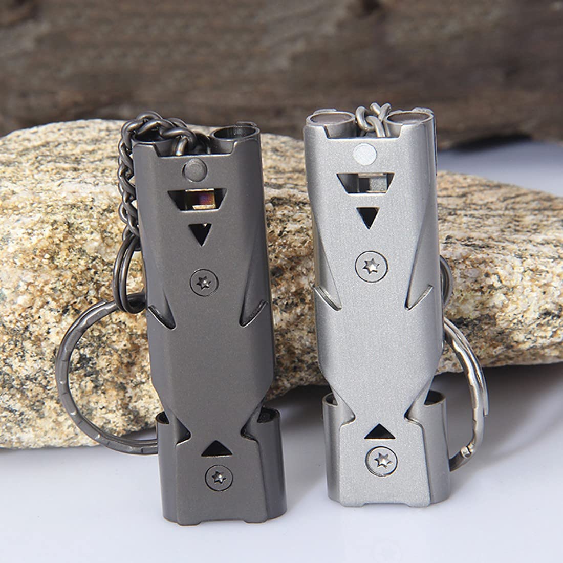 Immer sicher unterwegs mit diesen robusten Trillerpfeifen! Das 7er-Set ist perfekt für die ganze Familie, für Sportvereine oder als Notfallausrüstung. Mit über 120 Dezibel Lautstärke sind die Pfeifen selbst in lauter Umgebung oder über große Distanzen gut hörbar. Das Zweiloch-Design erzeugt eine Zweifrequenz-Pfeife mit besonders durchdringendem Signal. Aus hochwertiger Aluminiumlegierung gefertigt, sind sie korrosionsbeständig und extrem langlebig. Mit nur 5,5cm Größe und wenigen Gramm Gewicht passen sie an jeden Schlüsselbund, Rucksack oder Schwimmweste. Ideal für Outdoor-Aktivitungen wie Wandern, Camping, Bergsteigen, aber auch als Schiedsrichterpfeife beim Sport oder für das Haustiertraining. Die Bedienung ist denkbar einfach - wenig Kraftaufwand, auch für Kinder und ältere Menschen geeignet. Ein unverzichtbares Sicherheitsutensil für alle, die viel unterwegs sind!
