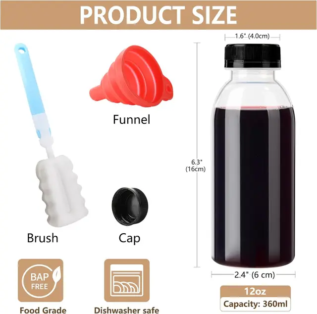 Hey, diese kleinen Saftflaschen sind ja mega praktisch! Im Set kriegst du gleich 16 Stück - perfekt für Vorrat oder für die ganze Familie. Jede Flasche fasst 120ml und ist nur 9,5cm hoch - also richtig handlich. Aus hochwertigem PET, BPA-frei und lebensmittelecht - absolut unbedenklich für Kinder! Transparent, damit du immer siehst was drin ist. Perfekt für Saft, Milch, Kaffee, Milchtee oder einfach Wasser. Aber Achtung: Kein heißes Wasser einfüllen! Super für unterwegs, Schule, Büro oder Picknick. Die kleinen Flaschen sind besonders niedlich für Kinderhände - stellen sich vor wie dein Kleiner mit so ner Mini-Flasche dasitzt! Dicht schließender Deckel - nichts läuft aus. Einfach zu reinigen, also wiederverwendbar und umweltfreundlich. Ob für Meal Prep, Kindergeburtstage oder als Probierfläschchen - mit diesen Flaschen bist du flexibel. Einfach befüllen, verschließen und mitnehmen - mehr Komfort geht kaum!