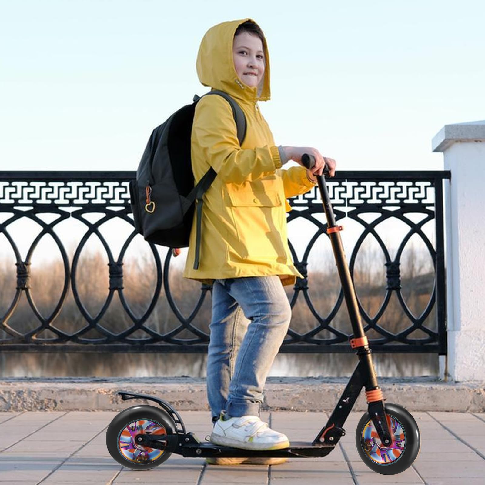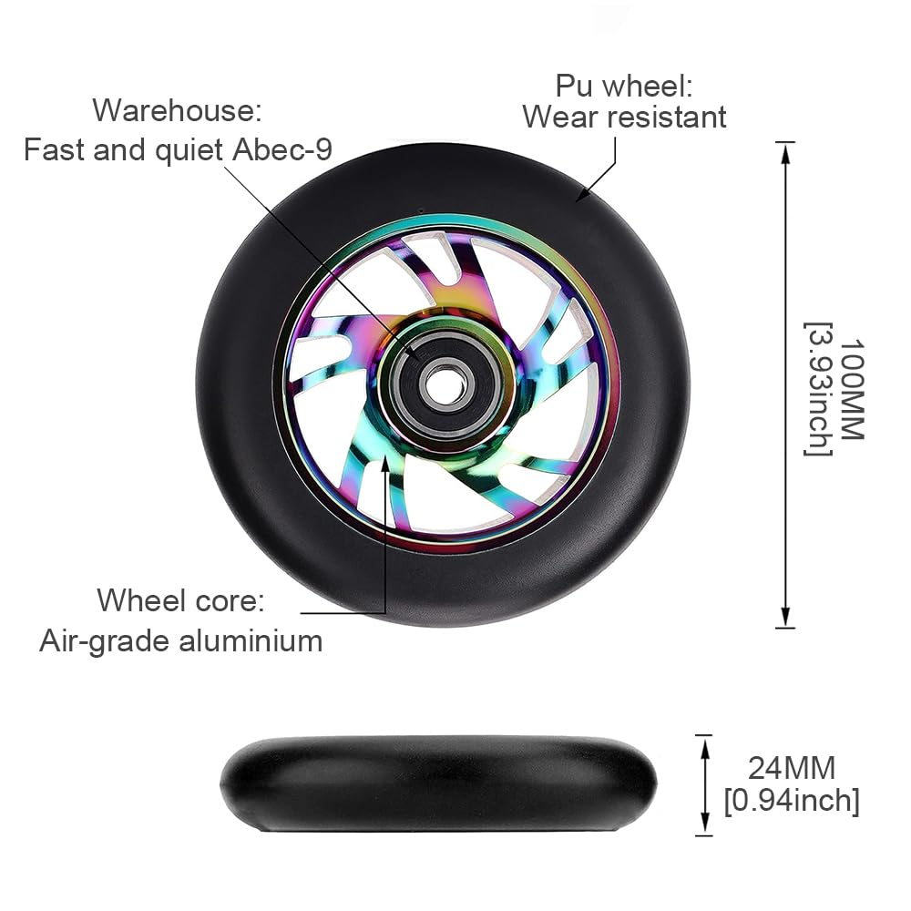 Willst du deinen Scooter aufmotzen? Diese goldenen 120mm Rollen sind genau das Richtige für dich! Mit hochwertigen ABEC-9 Lagern laufen sie super smooth und geben dir das perfekte Feeling für Tricks und Freestyle. Aus robustem PU-Material mit 88A Härte sind sie extrem langlebig und dämpfen Stöße super ab. Die Rollen sind super leise und bieten dir maximale Kontrolle bei jedem Move. Einfach zu montieren - passt auf die meisten Scooter-Modelle. Ob für den Skatepark oder die Straße, mit diesen Rollen machst du garantiert eine gute Figur! Perfekt für alle, die ihr Fahrgefühl verbessern wollen oder einfach nur stylische neue Rollen brauchen. Hol dir das 2er-Set und rocke die Straße!