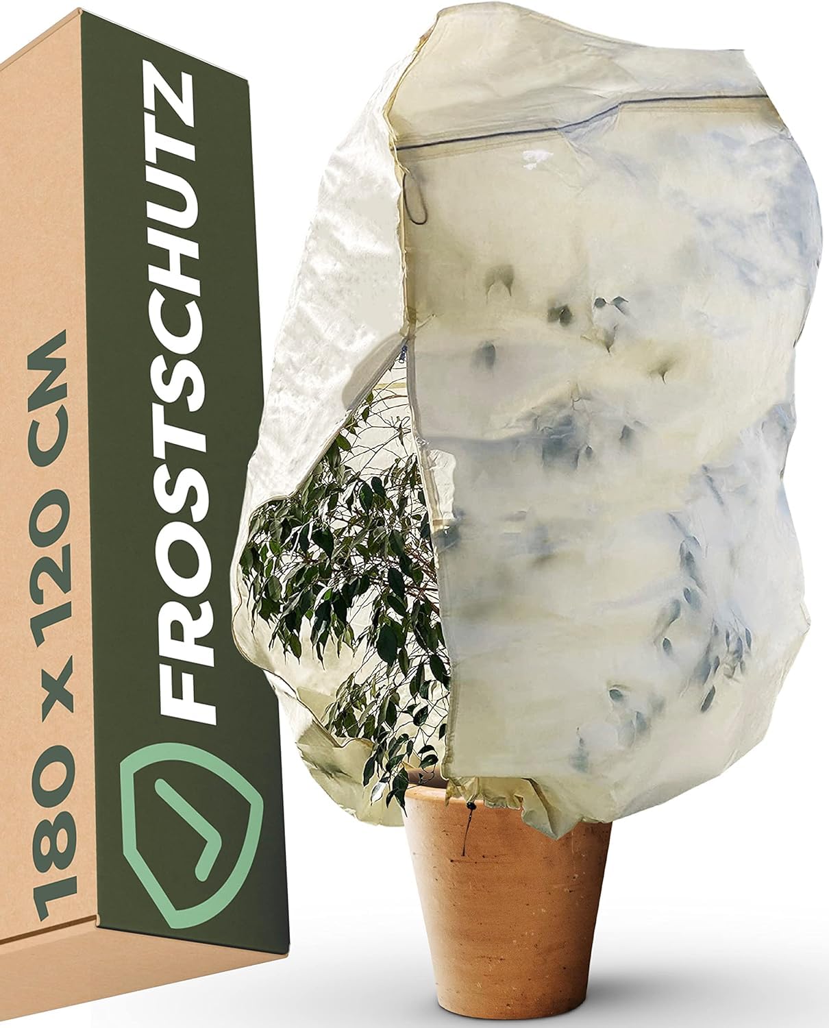 Gartenfreunde, schützt eure wertvollen Pflanzen vor der kalten Jahreszeit! Diese Jsdoin Pflanzenschutzhaube in 120x180cm Größe ist der ideale Winterschutz für eure Kübelpflanzen, Olivenbäume, Palmen und andere frostempfindliche Gewächse.\n\nAus hochdichtem Vliesstoff gefertigt, hält sie kalte Winde und Frost effektiv ab und erhöht die Temperatur um die Pflanze um 3-5°C. Aber keine Sorge - die spezielle Mikrolochstruktur sorgt für ausreichend Luftzirkulation und 60% Lichtdurchlässigkeit.\n\nDas praktische Doppelverschlusssystem mit Kordelzug und seitlichem Reißverschluss macht die Anwendung super einfach. UV-behandelt und temperaturbeständig von -15°C bis 50°C hält die Haube 3-5 Jahre.\n\nEinfach über die Pflanze stülpen, zuziehen und deine grünen Schätze sind sicher durch den Winter gebracht. Deine Pflanzen überleben den Frost und du hast im Frühjahr wieder Freude daran!