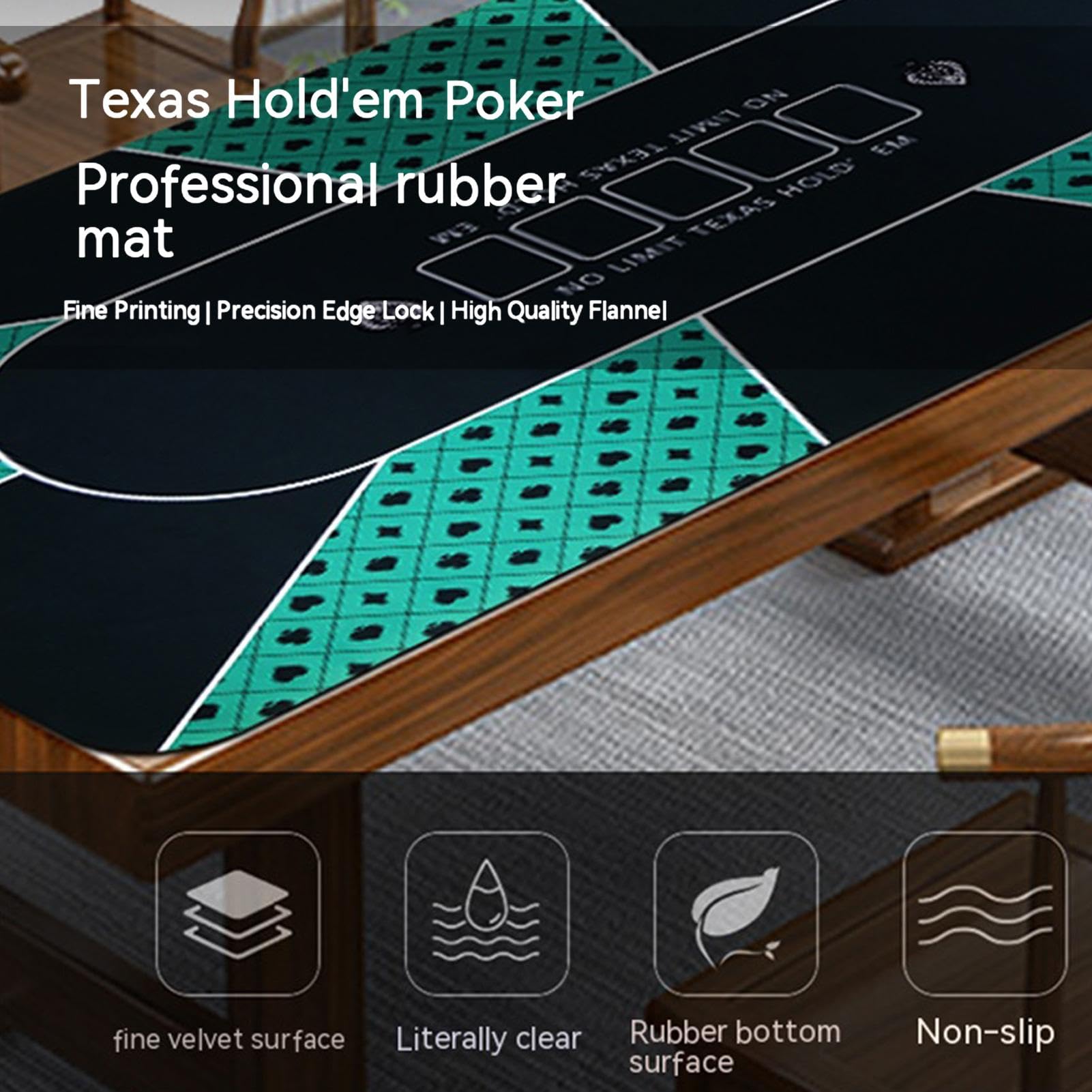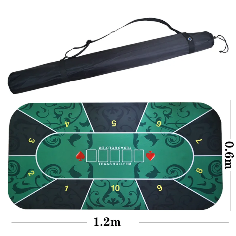 Bring Casino-Feeling in dein Wohnzimmer! Diese professionelle Poker-Tischdecke macht jeden Spieleabend zum echten Erlebnis. Mit 120 x 60 cm bietet sie reichlich Platz für Karten, Chips und Getränke.\\n\\nDie rutschfeste Gummibeschichtung sorgt dafür, dass nichts verrutscht - selbst bei hitzigen Spielen bleiben die Karten genau dort, wo sie hingehören. Die feine Samtoberfläche fühlt sich klasse an und schont dabei deine Möbel.\\n\\nEinfach ausbreiten und losspielen! Die Matte ist leicht zu reinigen und hält auch intensivem Gebrauch stand. Perfekt für Poker-Runden mit Freunden oder Turniere zu Hause.\\n\\nDetails:\\n- Maße: 120 x 60 cm\\n- Material: Hochwertiges Gummi\\n- Rutschfeste Unterseite\\n- Leicht zu reinigen\\n- Schont den Tisch\\n\\nOb du Poker-Profi bist oder gerade erst lernst - mit dieser Matte wird jedes Spiel zum Highlight. Die lebendige Aufdrucke mit Spielregeln helfen Anfängern und sorgen für authentische Casino-Atmosphäre.\\n\\nWeniger Lärm durch die Polsterung, mehr Spaß beim Spielen! Perfekt für gemütliche Abende mit Freunden oder spannende Turniere. Dein Poker-Setup wird damit komplett professionalisiert.