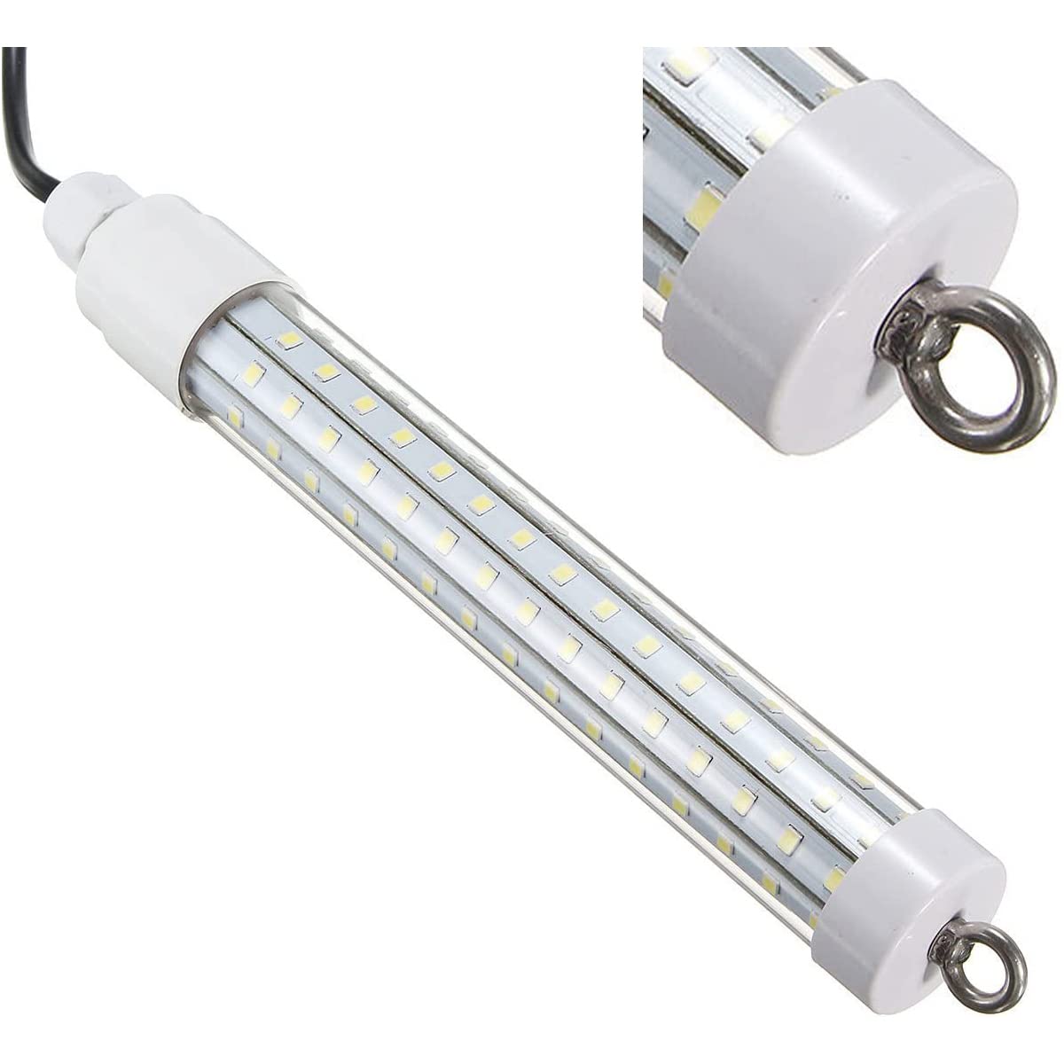 Angler, hört zu! Dieses Unterwasser-Licht lockt Fische magisch an - perfekt für Nachtangeln auf Crappie, Shad oder Tintenfisch. Mit 10W Power und kaltweißem Licht ziehst du die Fische aus der Dunkelheit an. Achtseitige LED-Perlen geben 360-Grad Licht ab - superhell! Das 6m lange Kabel ist korrosionsbeständig, isoliert und kältefest - hält also auch im Salzwasser. Mit Batterieklemmen und Sicherung für sicheren Betrieb. An deine Autobatterie oder eine tragbare Powerbank anschließen und ab geht's! Der Metallring am Ende ist praktisch für Gewichte oder zusätzliche Köder. Wichtig: NUR unter Wasser verwenden! An Land wird's zu heiß - also vor dem Rausnehmen Strom ausschalten. Mit 50.000 Stunden Lebensdauer hält die Leuchte ewig. 120 SMD2835-Zellen sorgen für maximale Helligkeit. Ob vom Boot, Kajak oder Kanu aus - damit wirst du mehr fangen, garantiert! Perfekt für Süß- und Salzwasser geeignet. Mach die Nacht zum Tag und locke die Fische in Schwärmen an. Einfach zu bedienen, robust und effektiv - was will man mehr? Hol dir diesen Lichtköder und erlebe Angel-Abenteuer, die du nicht vergisst! Deine Freunde werden staunen, was du alles fängst!