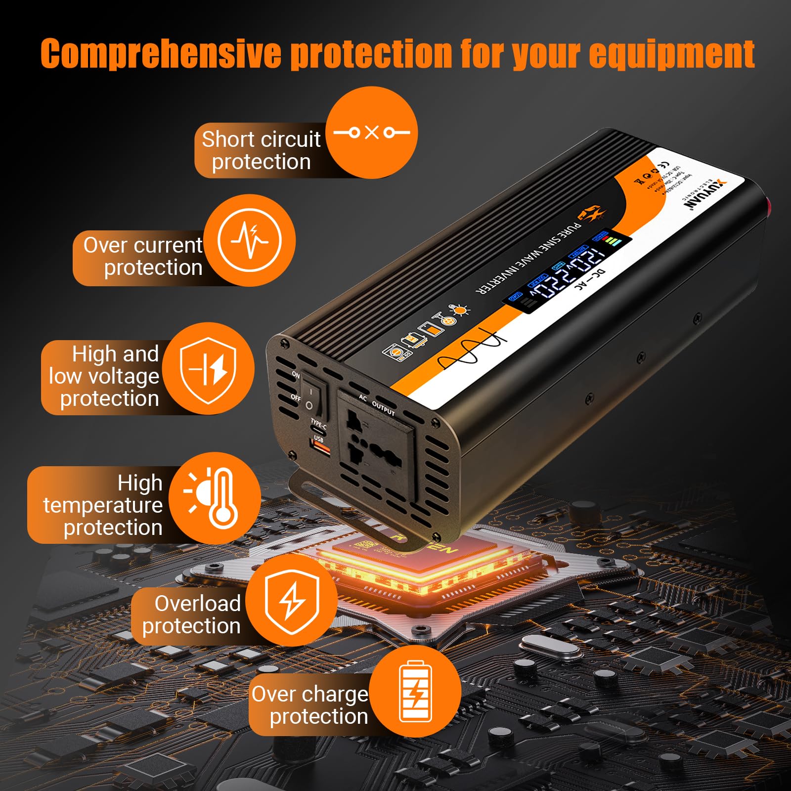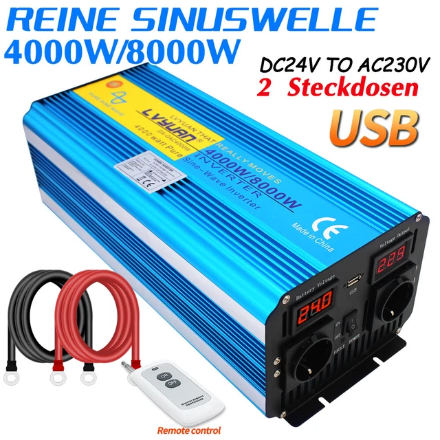 Für alle Outdoor-Fans und Camper: Dieser Wechselrichter ist ein absolutes Powerpaket! Wandelt 12V/24V aus Auto- oder Bootsbatterien in 230V Wechselstrom um - mit satten 2000W Spitzenleistung und 900W Dauerleistung. Die reine Sinuswelle ist perfekt für empfindliche Geräte wie Laptops, Kameras oder auch Küchengeräte. Mit LCD-Display siehst du immer genau, was Sache ist. Achtfacher Schutz sorgt für absolute Sicherheit: Verpolung, Kurzschluss, Überhitzung - alles kein Problem. Der 20W USB-C Anschluss lädt dein Smartphone superschnell, dazu gibt's noch normale USB-Ports und Steckdosen. Ob im Wohnmobil, auf der Baustelle oder beim Camping - mit diesem Teil hast du immer Strom. Einfach anschließen und loslegen!