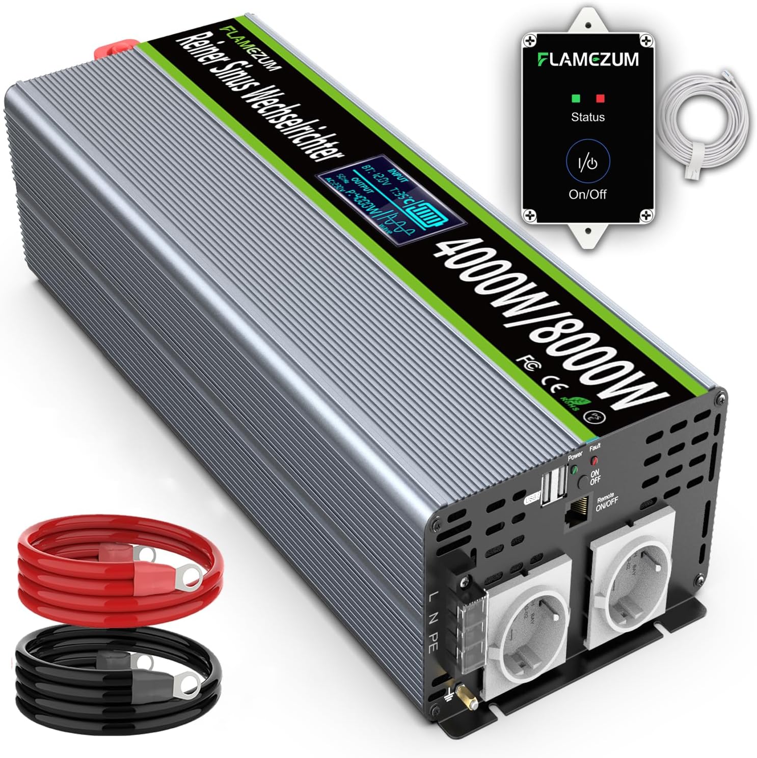 Du brauchst unterwegs Strom für deine Geräte? Der 800W Wechselrichter wandelt die 12V Bordspannung deines Autos in 220V Haushaltsstrom um – und das mit einer reinen Sinuswelle, die auch für empfindliche Elektronik wie Laptops, Smartphones oder Kleingeräte absolut sicher ist. Mit einer Nennleistung von 400W und einer Spitzenleistung von 800W meistert er die meisten Alltagsgeräte problemlos. Das Gehäuse aus Aluminiumlegierung ist robust, flammhemmend und schützt zuverlässig vor Überhitzung, Überspannung, Unterspannung oder Kurzschluss. Ein intelligenter Kühlventilator regelt die Temperatur und sorgt für einen leisen und effizienten Betrieb. Auf der Vorderseite zeigt ein farbiges LCD-Display die Eingangsspannung an, sodass du immer den Überblick über deine Autobatterie hast. Anschlüsse: eine EU-Steckdose und zwei USB-Ports zum gleichzeitigen Laden mehrerer Geräte. Perfekt also für Camping-Ausflüge, Roadtrips, Baustellen oder Notfälle zu Hause, wenn mal der Strom ausfällt. Im Lieferumfang sind ein Zigarettenanzünder-Kabel, Ersatzsicherungen und eine Bedienungsanleitung enthalten. Einfach anschließen und sofort nutzen – so hast du immer Strom, wo auch immer du bist!