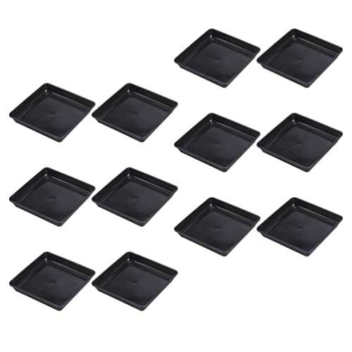 12x Blumentopf-Untersetzer Schwarz 29x29cm - Eckige Pflanzuntersetzer Für Innen & Außen
