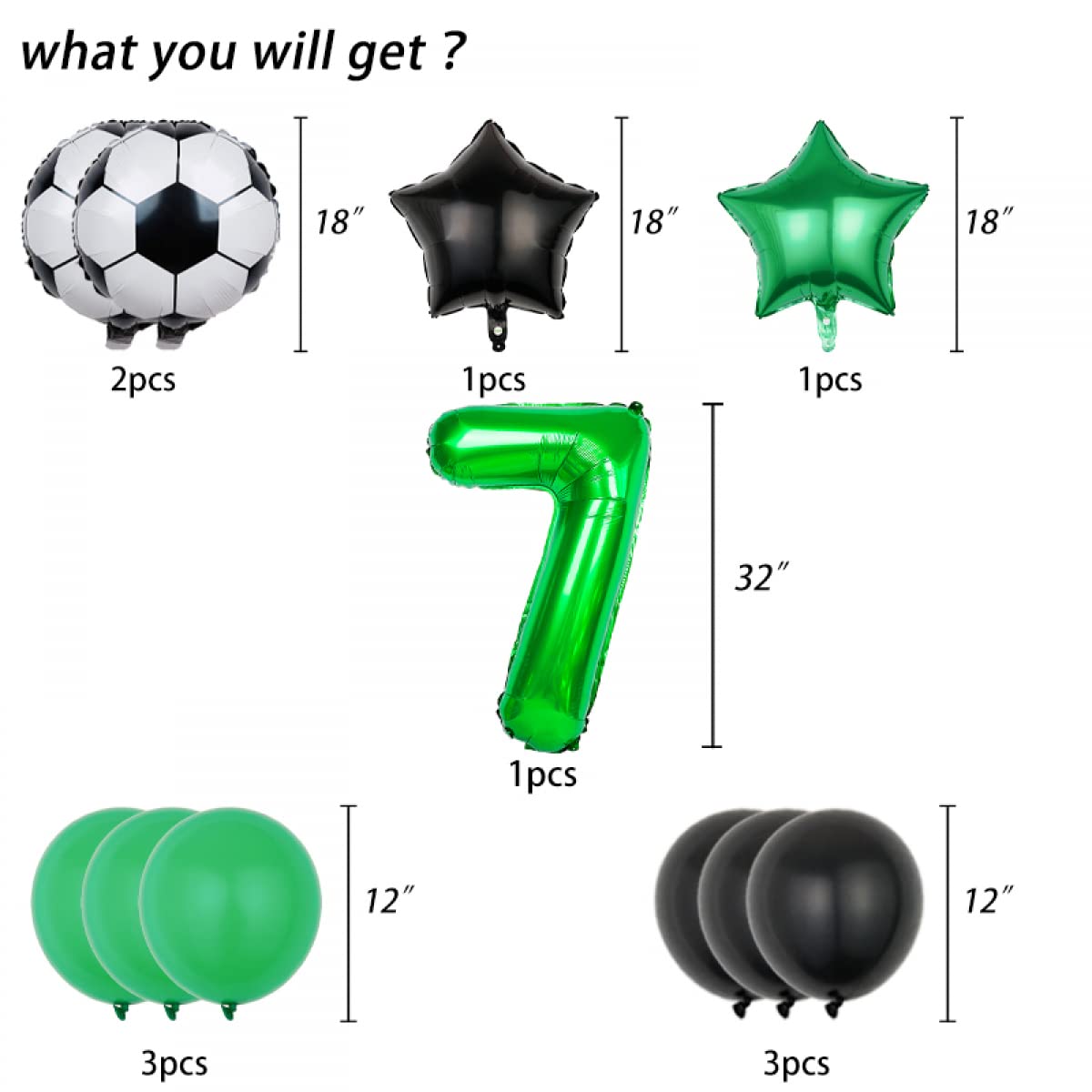 • Fußball Geburtstagsballons Set - 13-teilig Für Den 7. Geburtstag