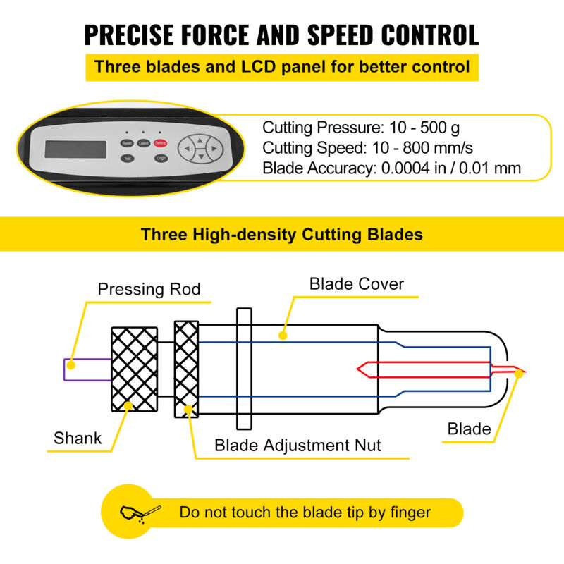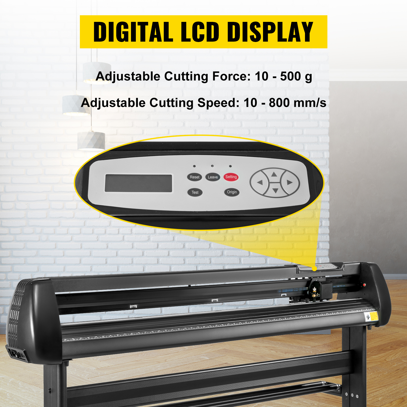 Hey, wenn du nach einem zuverlässigen Vinyl-Schneideplotter suchst, ist der VEVOR genau das Richtige für dich! Mit satten 135 cm maximaler Papierzufuhr und 126 cm Schnittbreite kriegst du auch größere Projekte easy hin. Ob Werbeschilder, Autofolien oder Deko - damit bist du bestens ausgestattet. Das coole LCD-Display macht die Bedienung super einfach: Du stellst Schnittdruck (10-500 g) und Geschwindigkeit (bis 800 mm/s) ganz easy ein. Die Doppelrollen mit Federung sorgen dafür, dass auch dickeres Vinyl ohne Stau durchläuft. Praktisch: Du kannst sowohl über USB als auch COM anschließen. Die mitgelieferte SignMaster-Software läuft auf Windows (leider kein Mac). Der stabile Standfuß mit Rollen ist perfekt, um den Plotter flexibel einzusetzen. Mit 22 kg ist er robust, aber trotzdem mobil. Lieferung inkl. 3 Klingen, Halterung, Software und Bodenständer - alles, was du zum Durchstarten brauchst! Perfekt für Werbetechnik, Handwerk oder DIY-Projekte.