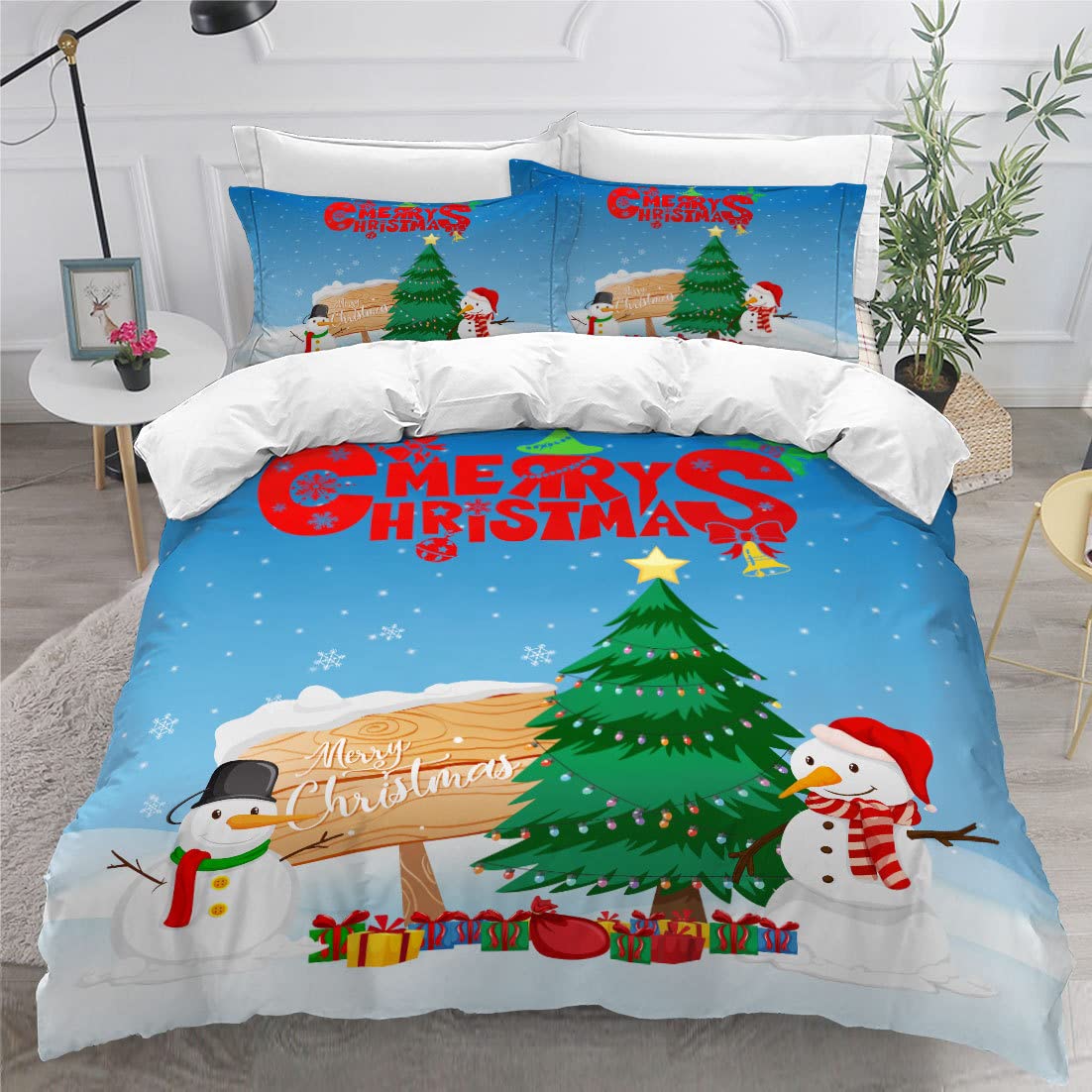 Weihnachts Bettwäsche 135x200cm 3-teilig - Mikrofaser Mit 3D Druck | Inkl. 2 Kissenbezüge 80x80cm