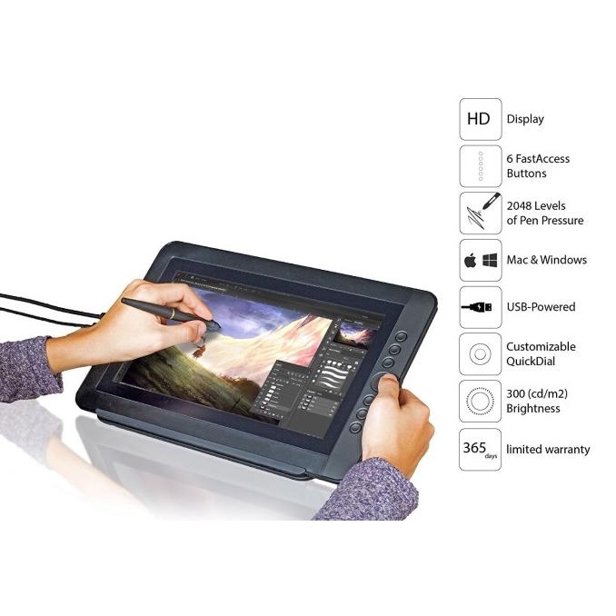 Für alle digitalen Künstler und Designer! Das Artisul D13S Grafiktablett mit 13,3 Zoll Full-HD Display ist dein Tor zur kreativen Welt. Mit 8192 Stufen Druckempfindlichkeit zeichnest du so präzise wie auf echtem Papier. Der batterielose Stift liegt perfekt in der Hand und die 6 programmierbaren Tasten plus Wählrad machen die Arbeit super effizient. Kompatibel mit Photoshop, Clip Studio und vielen anderen Programmen. Nur 1,1 kg leicht - ideal für unterwegs. Im Lieferumfang: Stift, Ständer, Kabel und sogar ein Zeichenhandschuh. Starte noch heute durch mit deinen digitalen Kunstwerken!