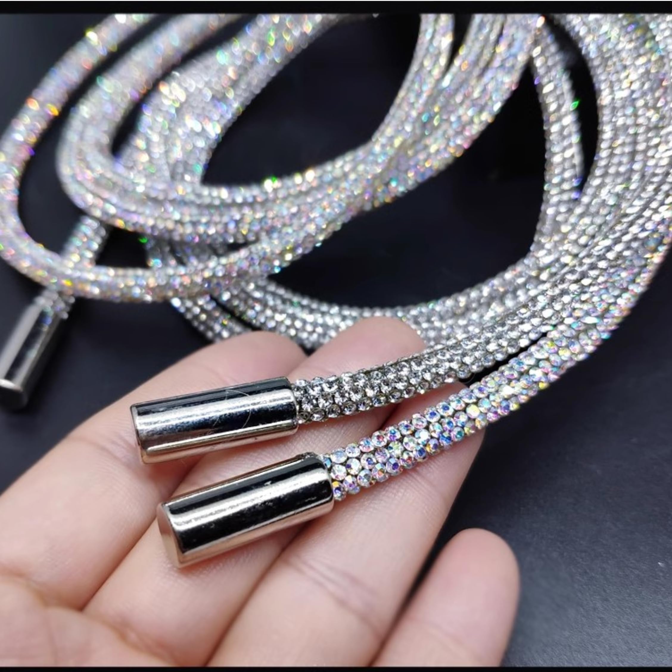 Boah, diese Strass-Schnürsenkel von MURYE bringen richtig Glamour in deine Sneakers! Mit 140 cm Länge und 0,35 cm Dicke passen sie super in die meisten Schuhe. Die funkelnden Strass-Steine machen aus langweiligen Turnschuhen sofort echte Hingucker - ob für den Alltag, Partys oder Festivals. Im Set sind zwei Schnürsenkel, also genug für ein Paar Schuhe. Es gibt sie in verschiedenen Farben wie Weiß, Schwarz, Regenbogen oder Champagner - da findest du sicher was zu deinem Style. Einfach die alten Schnürsenkel raus und die glitzernden rein - schon siehst du aus wie fresh aus dem Magazin! Perfekt für alle, die ihr Outfit aufpeppen wollen und nicht im Mainstream untergehen möchten. Aber Achtung: Wegen Handmessung kann die Länge minimal abweichen, aber das macht nix!