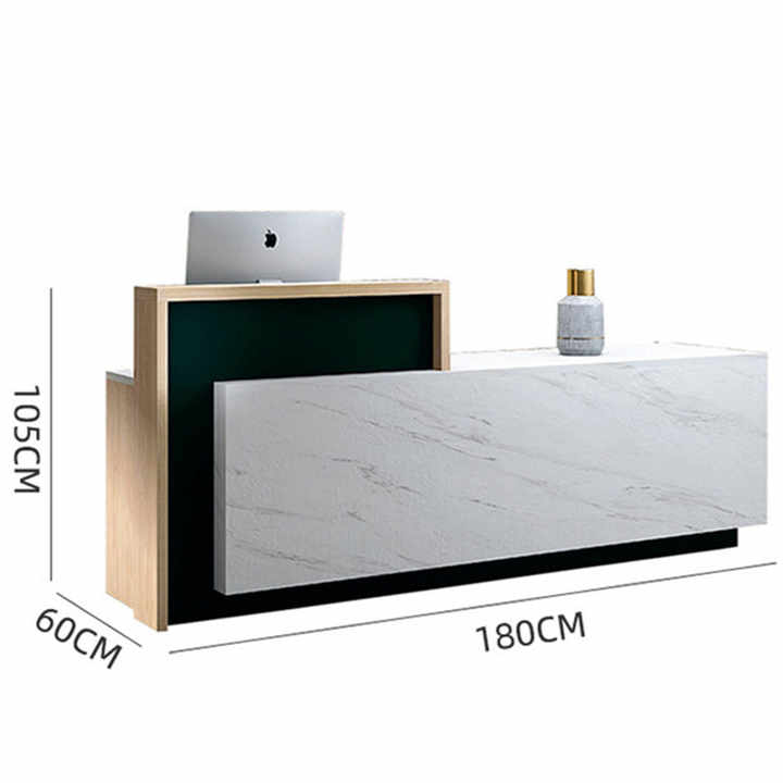 Professionell und stylisch! Diese Verkaufstheke ist perfekt für dein Geschäft, Salon oder Hotel. Mit 140cm Länge bietet sie genug Platz für Kasse, Computer und Arbeitsmaterial. Die abschließbaren Schubladen sorgen für sichere Aufbewahrung von Bargeld und Wertsachen. In eleganter Marmor-Optik mit weißem Finish - sieht einfach hochwertig aus! Aus robustem MDF mit Stahlrahmen für extra Stabilität. Perfekt für Empfangsbereiche, Retail-Stores, Beauty Salons oder Cafés. Mit versteckten Fächern und Regalen für organisierten Stauraum. Mach deinen Business-Bereich funktional und einladend zugleich!