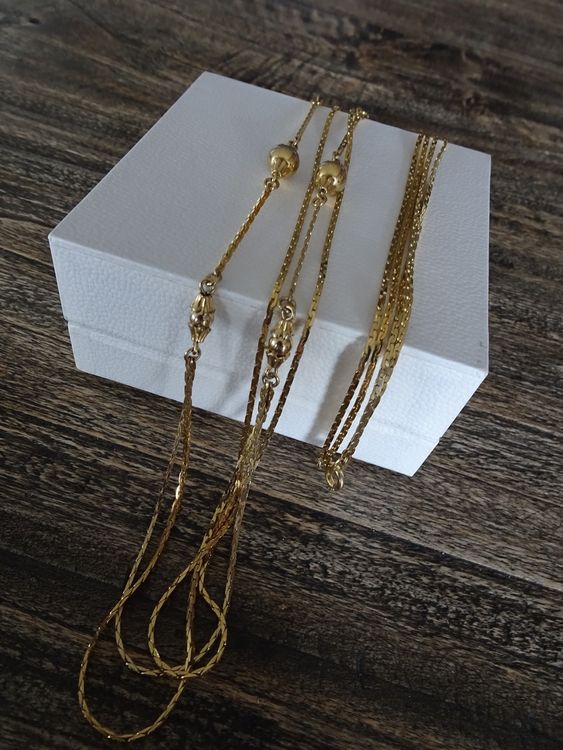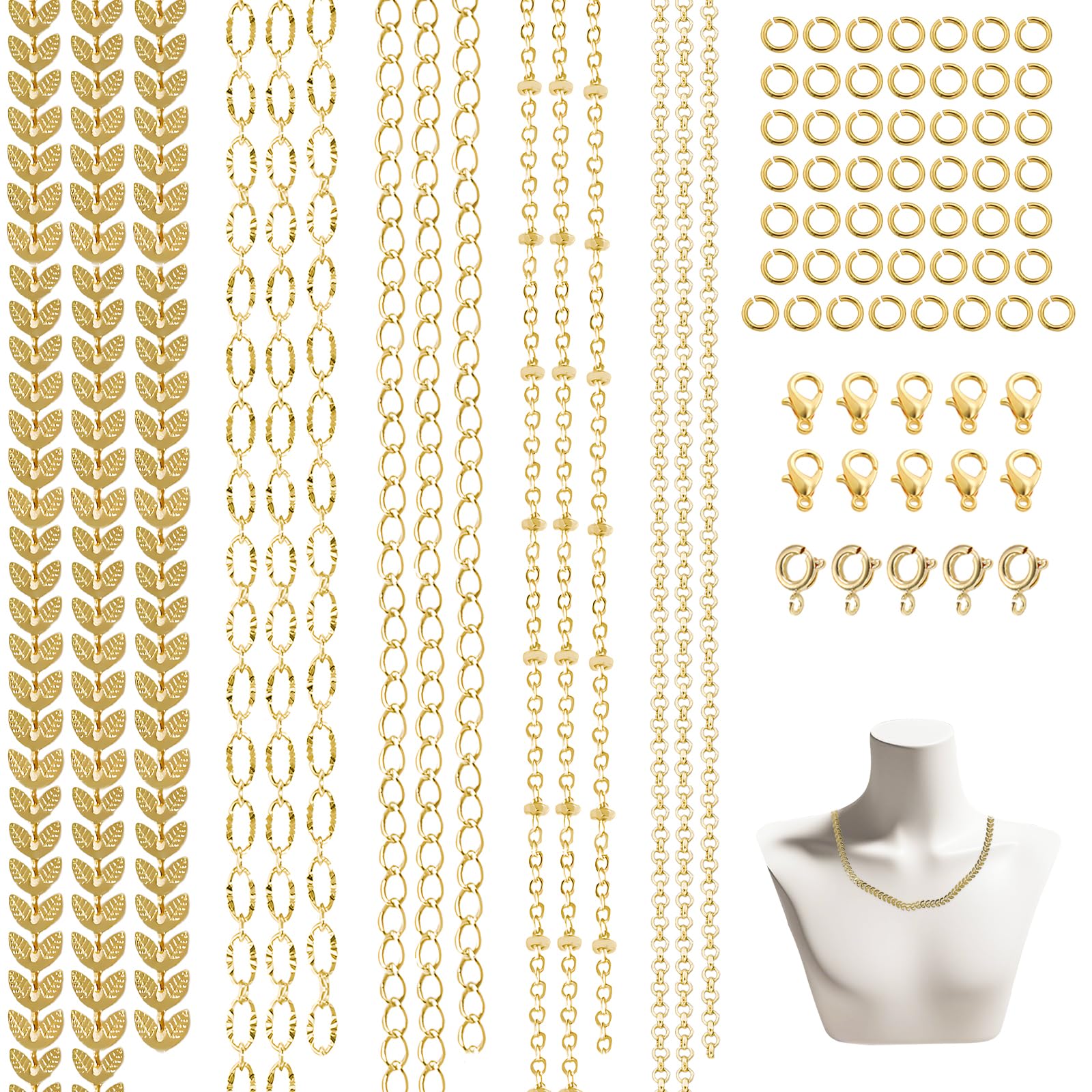 Alles was du für kreativen Schmuck brauchst! Dieses umfangreiche Set enthält 5 verschiedene Ketten-Typen in 14K Vergoldung - insgesamt 5 Meter Material. Inklusive Zubehör: 10 Karabinerverschlüsse, 5 Federverschlüsse und 50 Biegeringe für professionelle Ergebnisse. Aus vergoldetem Kupfer das nicht korrodiert und seinen Glanz lange behält. Perfekt für Halsketten, Armbänder, Ohrringe oder andere Accessoires. Einfach zuschneiden und kombinieren - deiner Kreativität sind keine Grenzen gesetzt. Jede Kette einzeln verpackt, damit nichts verheddert. Ideal für Schmuckdesign-Anfänger und Profis gleichermaßen. Tolle Geschenk-Idee für kreative Köpfe oder um selbst die Schmuck-Sammlung zu erweitern. Verwende die Ketten alleine oder kombiniere sie mit anderen Schmuckkomponenten. Einfache Aufbewahrung - platzsparend und immer griffbereit. Mach deinen eigenen, einzigartigen Schmuck der genau deinem Style entspricht!