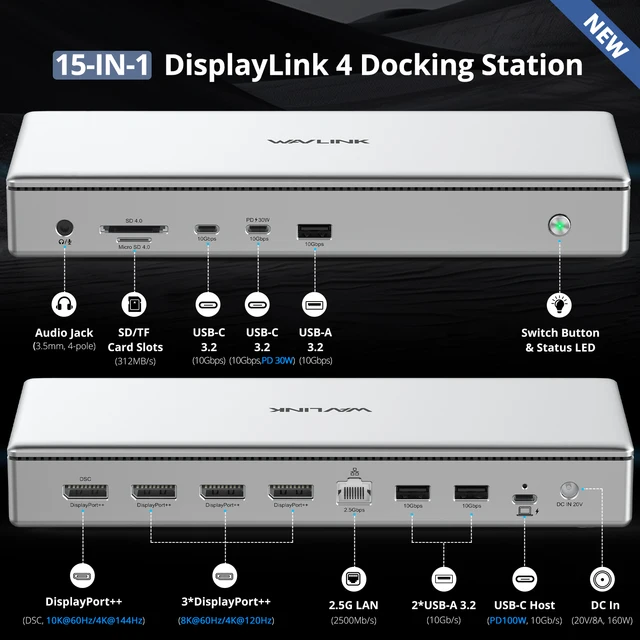 Boah, diese WAVLINK Docking Station ist ja mal richtig krass! 15 Anschlüsse auf einmal - da kannst du deinen Laptop zur kompletten Arbeitsstation ausbauen. Drei Monitore gleichzeitig mit 4K@60Hz - absolut gestochen scharf! Perfekt für Video-Bearbeitung, Gaming oder einfach mehr Produktivität. Mit DisplayLink-Technologie - auch für M1/M2/M3/M4 Macs geeignet! Aber Achtung: Treiberinstallation nötig, aber einfach von displaylink.com herunterladen. Lädt deinen Laptop mit bis zu 100W - während alle Geräte angeschlossen sind. Super schnelle 10Gbps USB-C Ports für rasante Datenübertragung. Dazu Gigabit Ethernet, SD/TF-Kartenleser und Audio-Anschlüsse - es fehlt wirklich nichts! Kompatibel mit Windows, macOS, Chrome OS und Android. Einfach genial, wie aus dem schlanken Laptop sofort eine Power-Station wird! Perfekt für Home-Office, Büro oder kreative Arbeit. So sparst du dir lästiges Umstecken und hast alles immer griffbereit. Absolute Kaufempfehlung für alle, die mehr aus ihrem Laptop herausholen wollen!