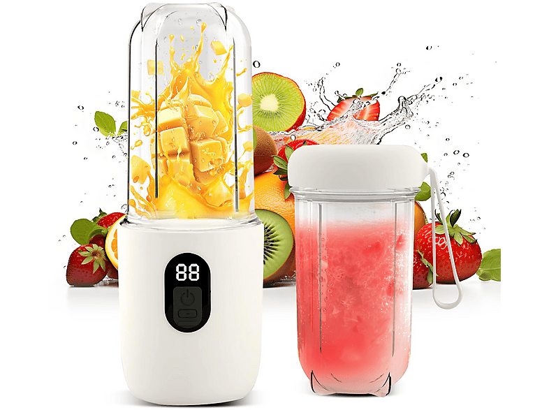 Perfekte Smoothies überall und jederzeit! Dieser portable Mixer mit smartem Digital-Display zeigt dir genau, was Sache ist: Ladezustand, Nutzungsdauer und Betriebsmodus. Mit starkem 1500mAh Akku mixst du bis zu 8 Gläser mit einer Ladung. Der 40W Motor schafft 20.800 U/min - in nur 9 Sekunden ist dein Drink fertig! 16 Edelstahl-Klingen zerkleinern alles mühelos. Nur 450g leicht, mit 500ml Behälter und Trinkdeckel. Ideal für Büro, Auto, Camping oder unterwegs. Einfach reinigen - 30 Sekunden Selbstreinigung. Gesundes Essen war noch so praktisch!