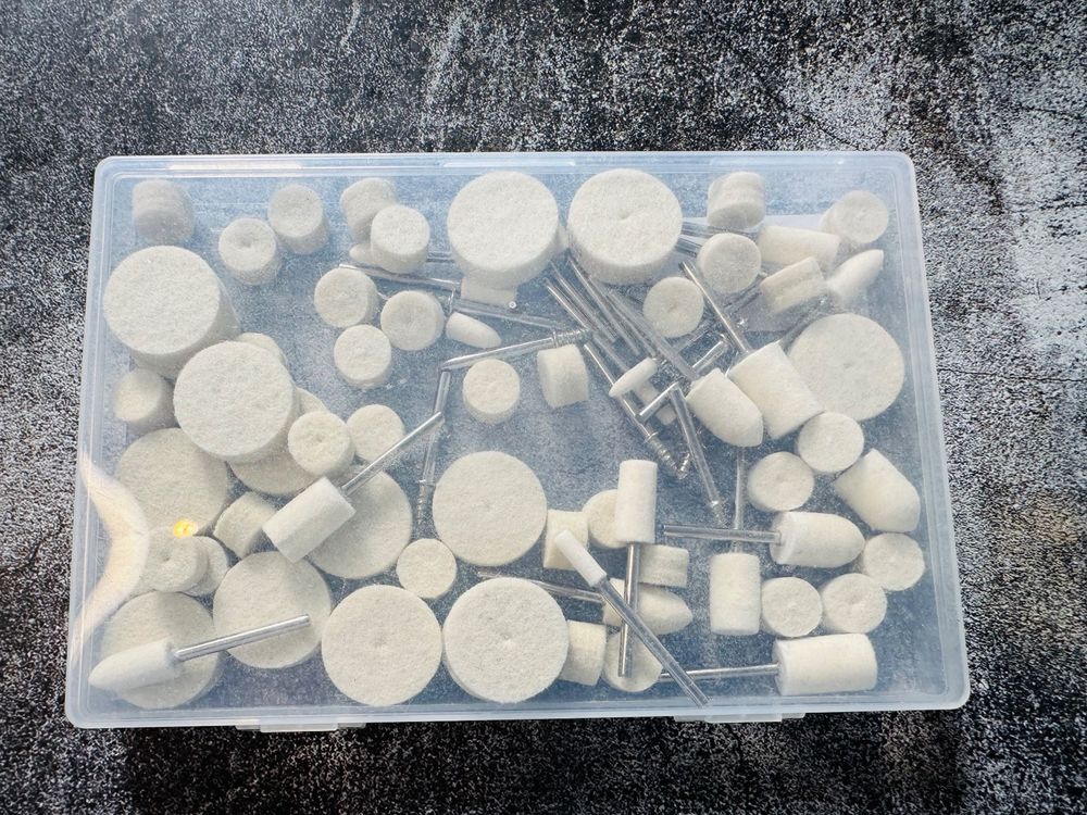 Riesiges Polier-Set mit 150 Teilen - da ist für jeden Einsatz was dabei! Verschiedene Größen und Formen: 35x25mm, 35x12mm, konische und zylindrische Aufsätze. Perfekt für Dremel und andere Rotationswerkzeuge. Aus hochwertigem Wollfilz, super für Metall, Schmuck, Uhren, Glas und mehr. Einfach auf den Dorn stecken und bei niedriger Drehzahl polieren - schon glänzt alles wie neu! In praktischer Aufbewahrungsbox, alles ordentlich sortiert. Ob für Hobby oder Profi - dieses Set ist ein absoluter Game-Changer. Mach deine Sachen wieder blitzeblank!