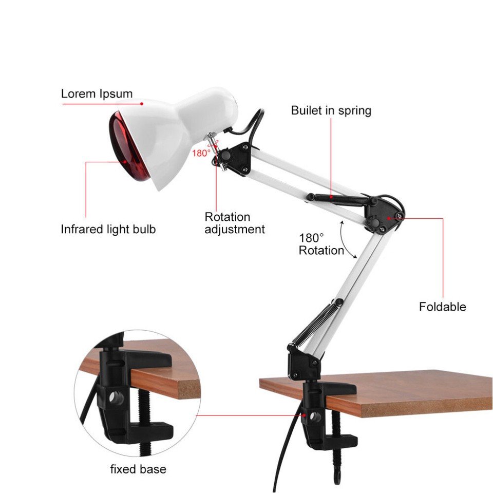 Endlich entspannen und Schmerzen lindern - diese Profi-Infrarotlampe macht's möglich! Mit 150W Leistung und E27-Fassung sorgt sie für wohltuende Wärme genau dort, wo du sie brauchst. Der stabile Standfuß ist komplett schwenkbar (360°) und in der Höhe verstellbar, sodass du Hals, Rücken, Schultern oder Hände perfekt behandeln kannst. Die Lampe hat ein 1,8m langes Kabel und erreicht eine Temperatur von über 100°C. Perfekt für zu Hause, aber auch für Massagepraxen oder Beauty-Salons. Einfach einschalten, in 30-50cm Abstand positionieren und 15-30 Minuten genießen. Die tiefenwirksame Wärme fördert die Durchblutung, lockert verspannte Muskeln und kann sogar bei Gelenkbeschwerden helfen. Wichtig: Nicht direkt in die Lampe schauen und brennbare Materialien fernhalten. Ein echter Gesundheits-Boost für kalte Tage!