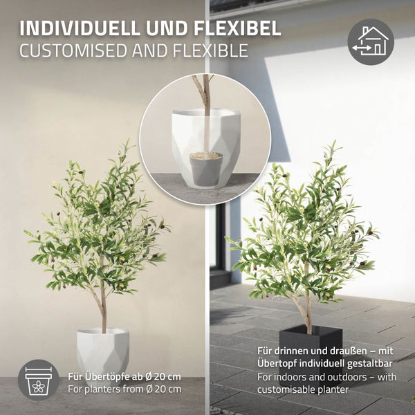 Grün, das niemals welkt! Dieser wunderschöne künstliche Olivenbaum von SUBTLETY bringt mediterranes Flair in dein Zuhause - ganz ohne Pflegeaufwand! Mit 150cm Höhe ist er ein echter Hingucker im Wohnzimmer, Büro oder Flur. Der realistische PE-Stamm und die naturgetreuen Blätter täuschen echtem Grün kaum nach. Das modulare Design macht den Aufbau super einfach - einfach die Teile zusammenstecken und fertig! Die Blätter sind aus hochwertigem, wetterfestem Material, das nicht verblasst und geruchsneutral ist. Perfekt für Familien mit Kindern oder Haustieren! Der stabile Zementfuß im Kunststoff-Blumentopf gibt dem Baum sicheren Stand. Kein Gießen, kein Beschneiden, kein Umtopfen - einfach aufstellen und jahrelang Freude haben! Auch als Geschenk für Einzug, Geburtstag oder Jubiläen ideal. Verschiedene Größen und Baumarten verfügbar!