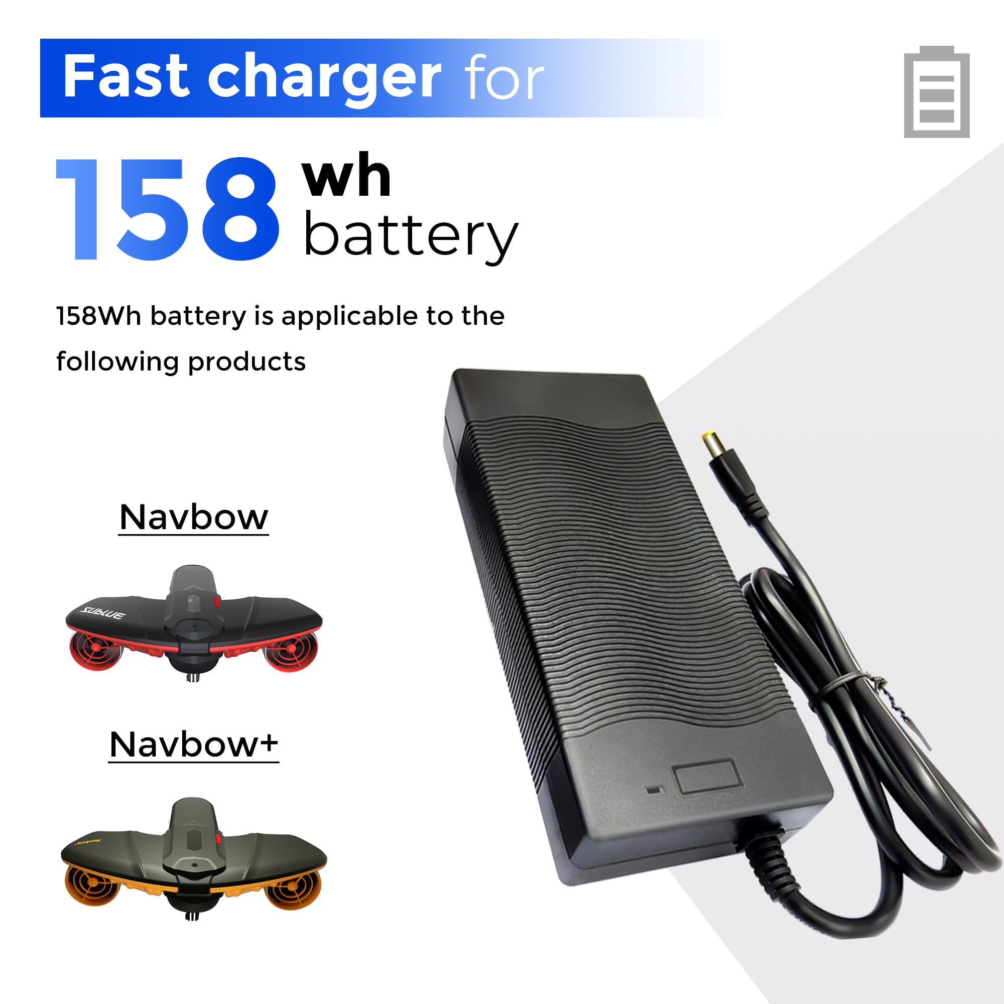 Verlängere deine Tauchabenteuer! Dieser originale movesea Ersatzakku passt perfekt für den Tini Navbow SWII Unterwasser-Scooter. Mit 158Wh Kapazität und 10670mAh bietet er genug Power für extended Tauchgänge. Die Spannung liegt zwischen 14,8V und 16,8V - optimal abgestimmt auf dein Gerät. Ladezeit beträgt nur 3,5 Stunden, die Akkulaufzeit bis zu 60 Minuten bei voller Leistung. Mit 1100g Gewicht und den Maßen 171x60x60mm handlich und leicht zu transportieren. Maximale Ladeleistung: 100W. Wichtig: Nur bei Temperaturen zwischen 5°C und 40°C laden. Perfekt als Zweitakku für längere Tauchausflüge oder als Ersatz für deinen alten Akku. Originalqualität von movesea - darauf kannst du dich verlassen. So verpasst du kein Wunder der Unterwasserwelt mehr. Einfach wechseln und abtauchen - die Meeresbewohner warten schon!