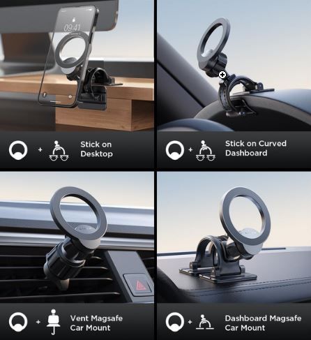 • LISEN MagSafe Auto Halterung - 15W Wireless Charging Mit Vakuum Saugnapf